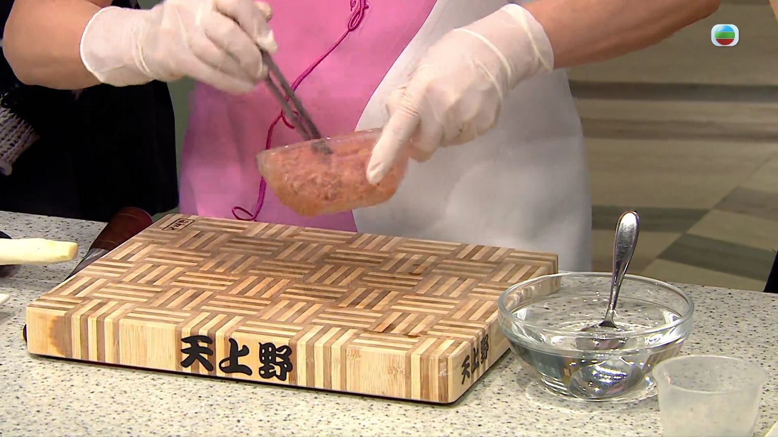 1.免治豬肉加醃料拌勻,捏成肉丸備用。