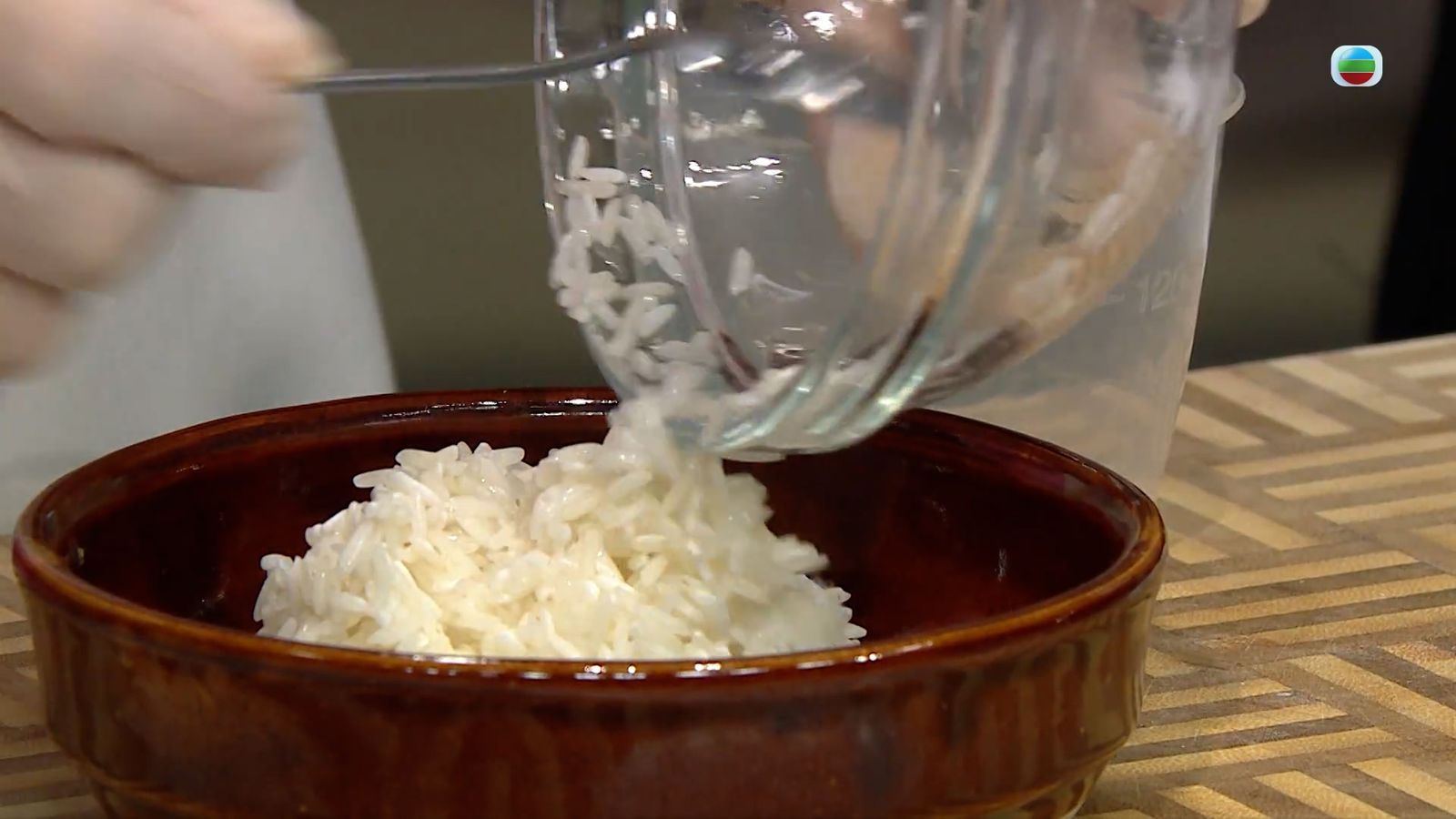 4.米洗淨瀝乾,放瓦砵內,加入等量清水,隔水蒸25分鐘,撒杞子再蒸3分鐘。