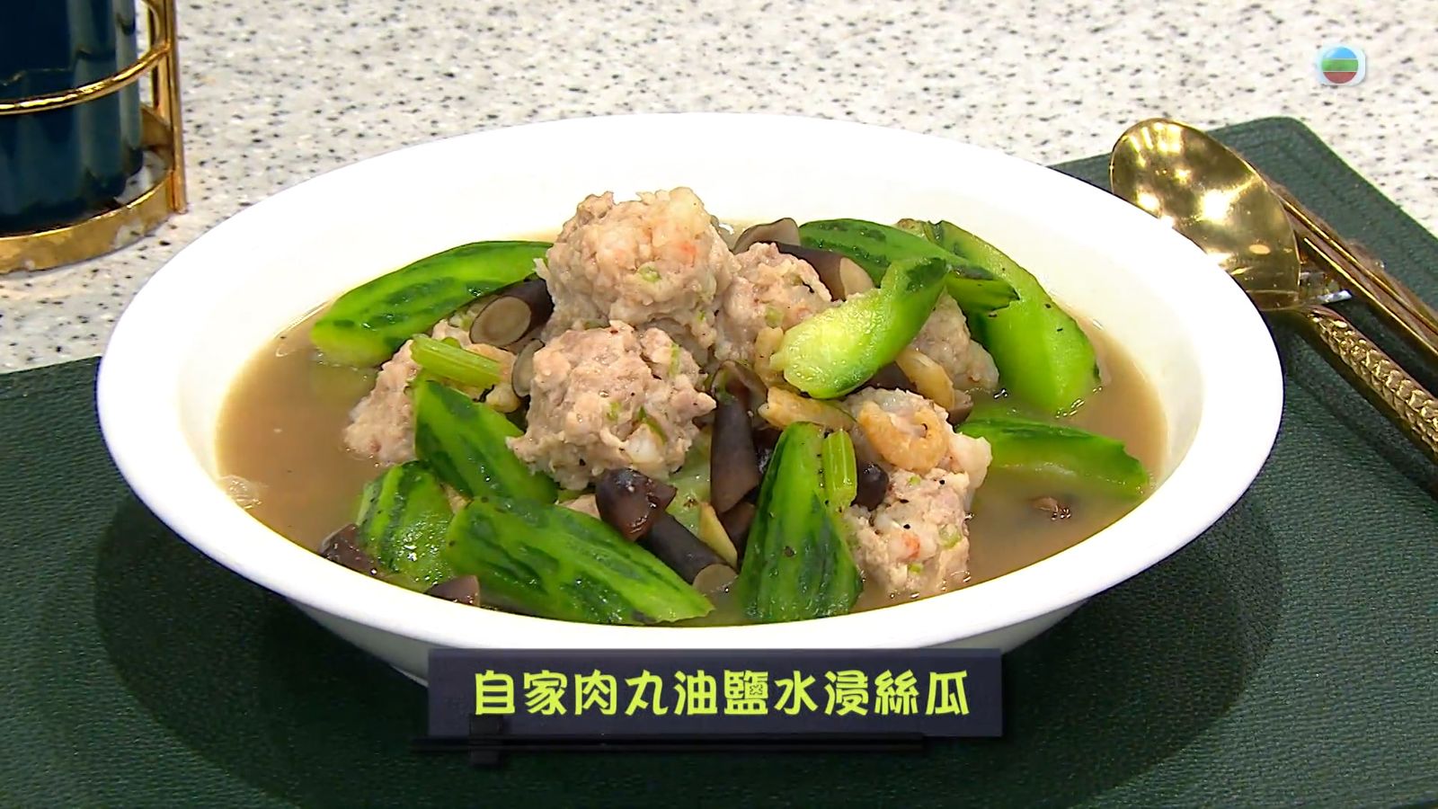 今集《流行都市》「睇餸食飯」環節有 Annie黃婉瑩 教大家做「自家肉丸油鹽水浸絲瓜」 。![]()