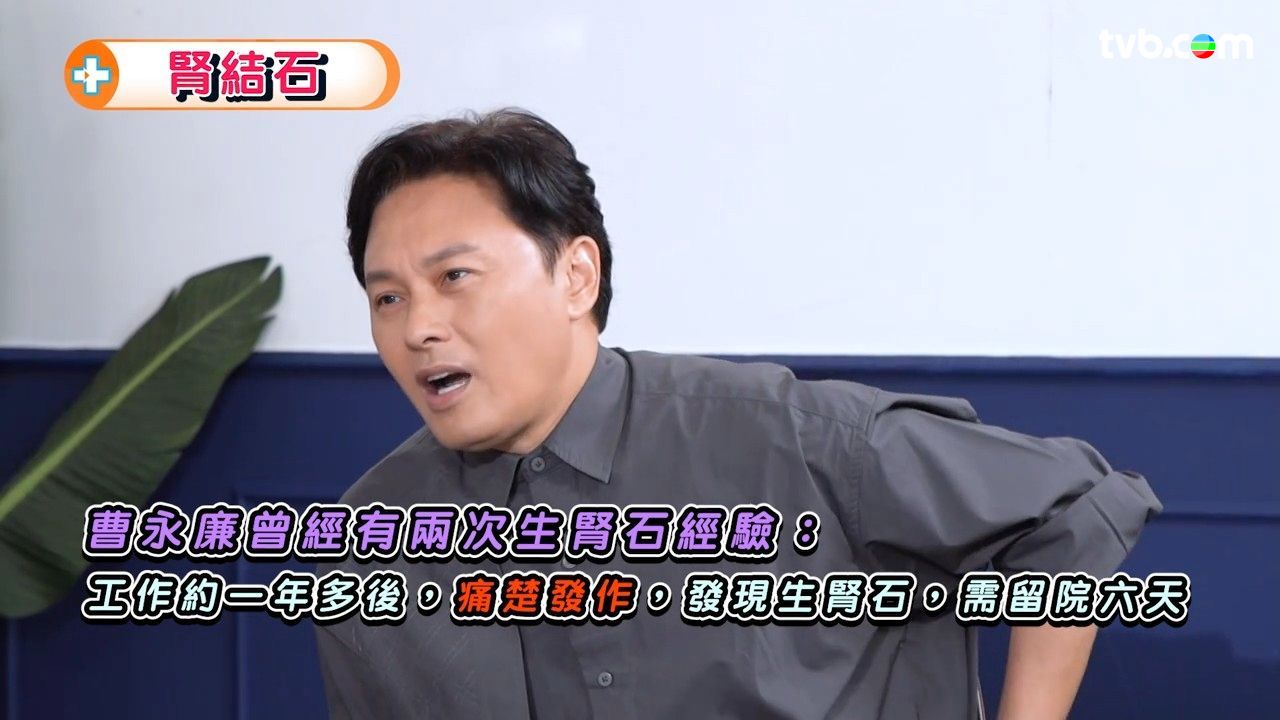 腎結石是常見都市病,在一個或兩個腎臟中出現,每10個人就有超過1位受到影響。曹永廉在TVB節目《醫度講》分享生腎石的經歷,節目還邀請來泌尿外科專科醫生王明皓醫生與何慧欣中醫師、李澄琳營養師一起為大家講解腎結石的成因與飲食建議。