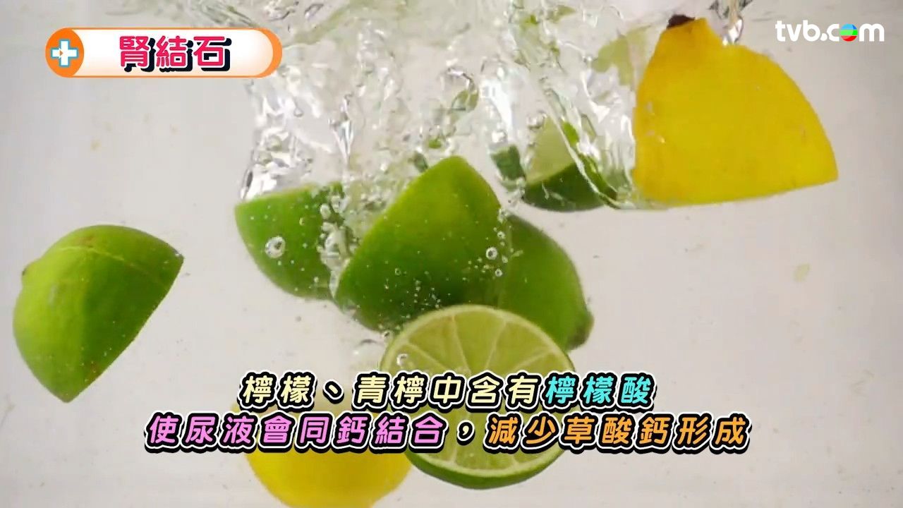 李澄琳營養師介紹,飲水可以幫助排出鈉質,更有效的方法是食鉀食物,例如蕃薯、薯仔。飲水的量要取決於個人情況,並不限制於每日8杯水,都可以在水中加入新鮮檸檬或青檸榨汁。因為檸檬、青檸中含有檸檬酸,使尿液會同鈣結合,減少草酸鈣形成。![]()