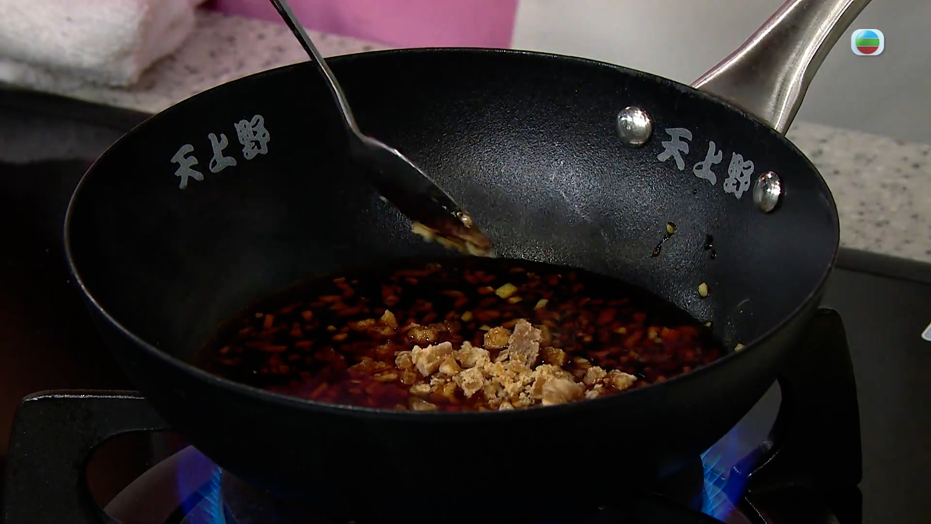 與此同時預先調製醬汁,煮熱鎮江醋之反加入薑蓉和片糖碎煮勻即成,十分簡易。