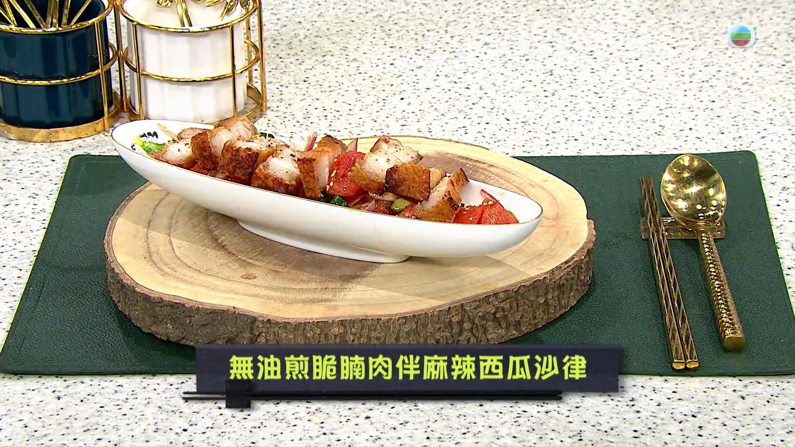 今集《流行都市》「睇餸食飯」環節有 Margaret傅季馨 教大家做「無油煎脆腩肉伴麻辣西瓜沙律」。![]()