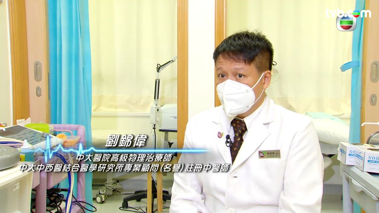 - 物理治療:超聲波 改善細胞膜滲透壓,達到消炎效果;干擾電流機刺激深層肌肉及神經軟組織以減痛。