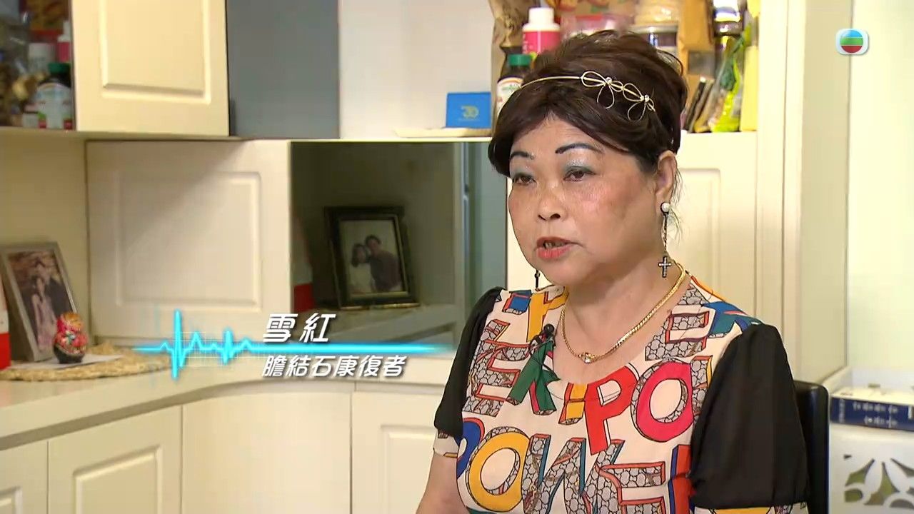 71歲的雪紅都曾患有膽結石,她曾在TVB《最強生命線》中指在沙士期間因咳嗽去照肺,最後發現膽結石,確診後回想起之前,原來她不時有後背疼痛問題,只是沒有理會。