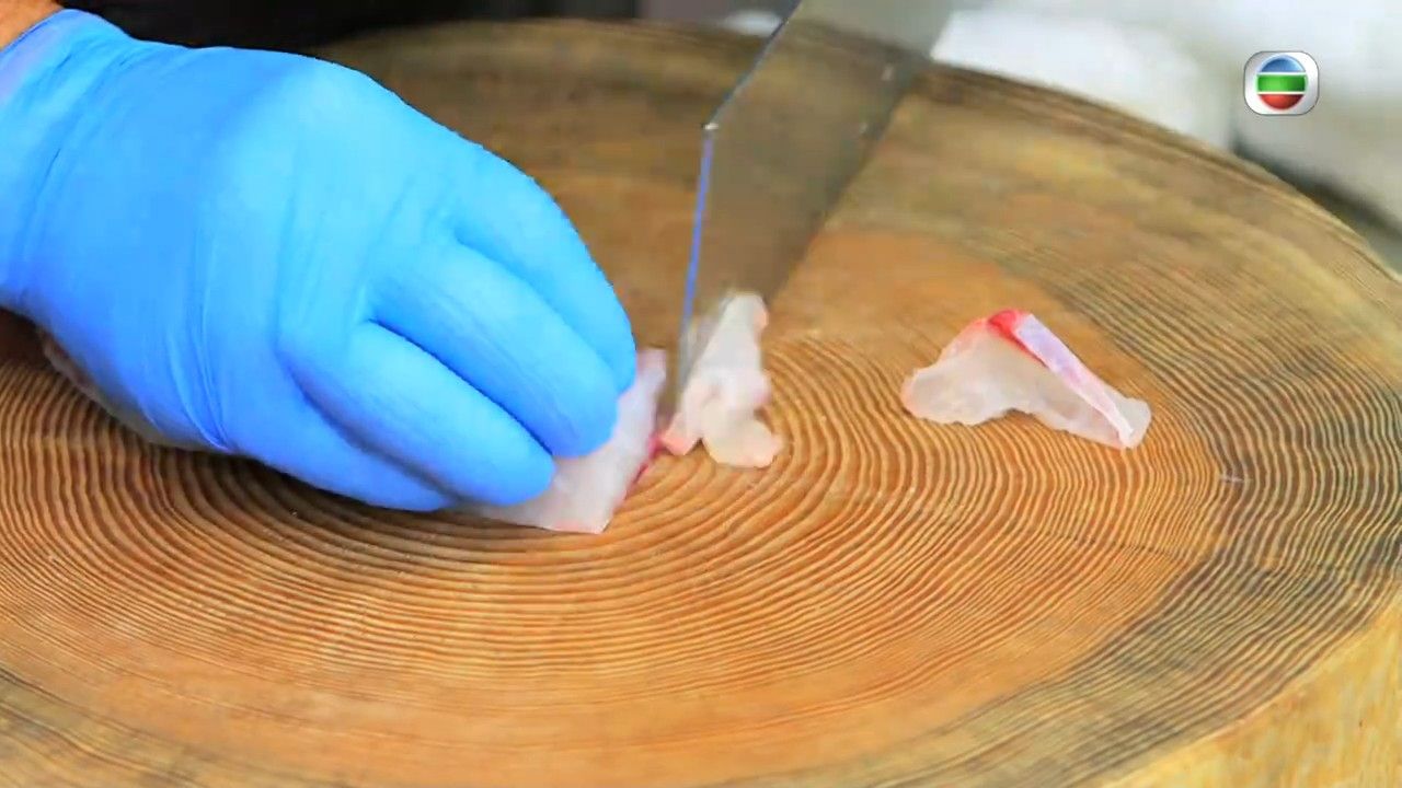 • 切魚片時,切第一刀時不要切斷,第二刀才直接切斷,做成兩片連著就是「雙飛」,會更易熟