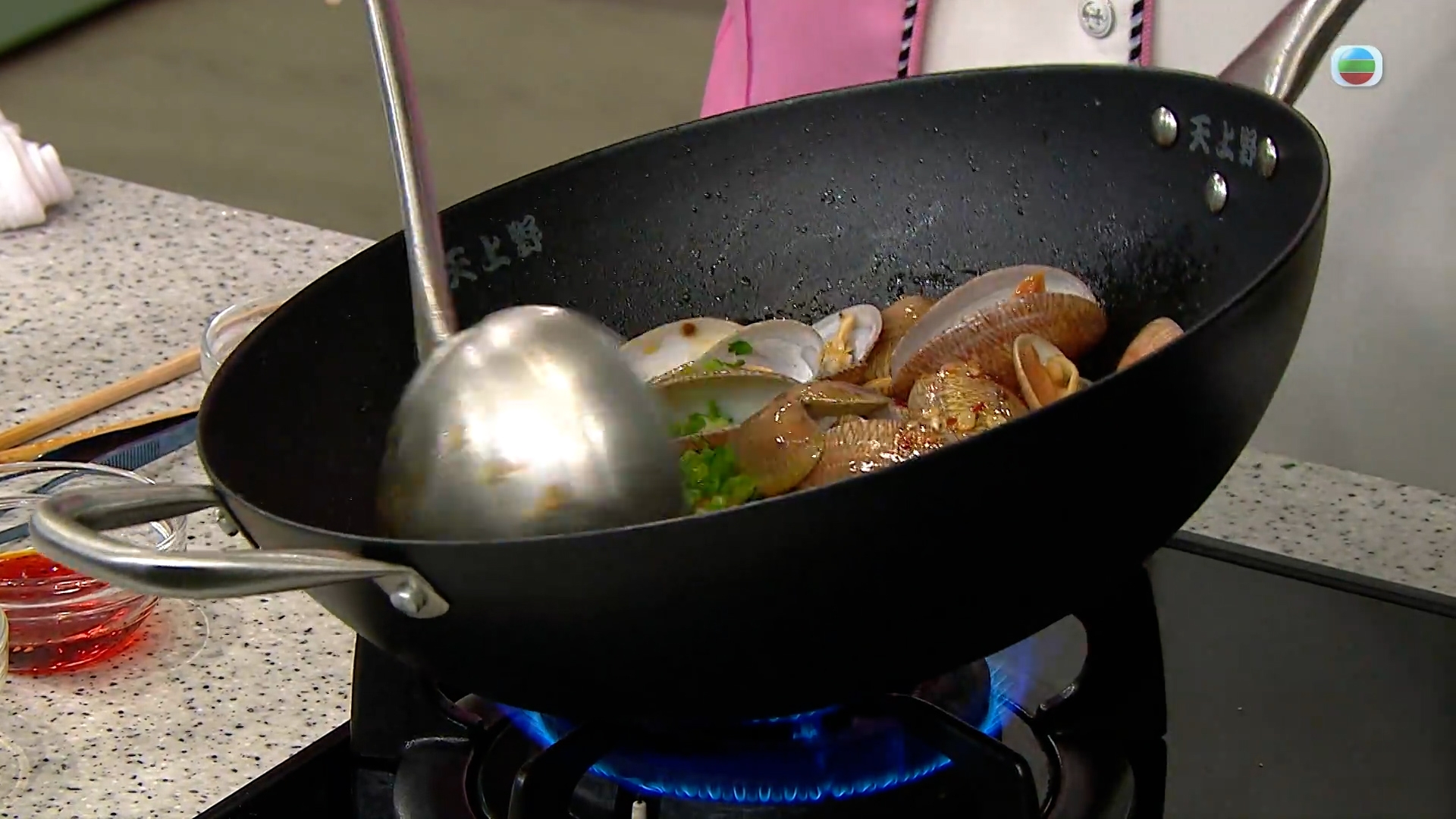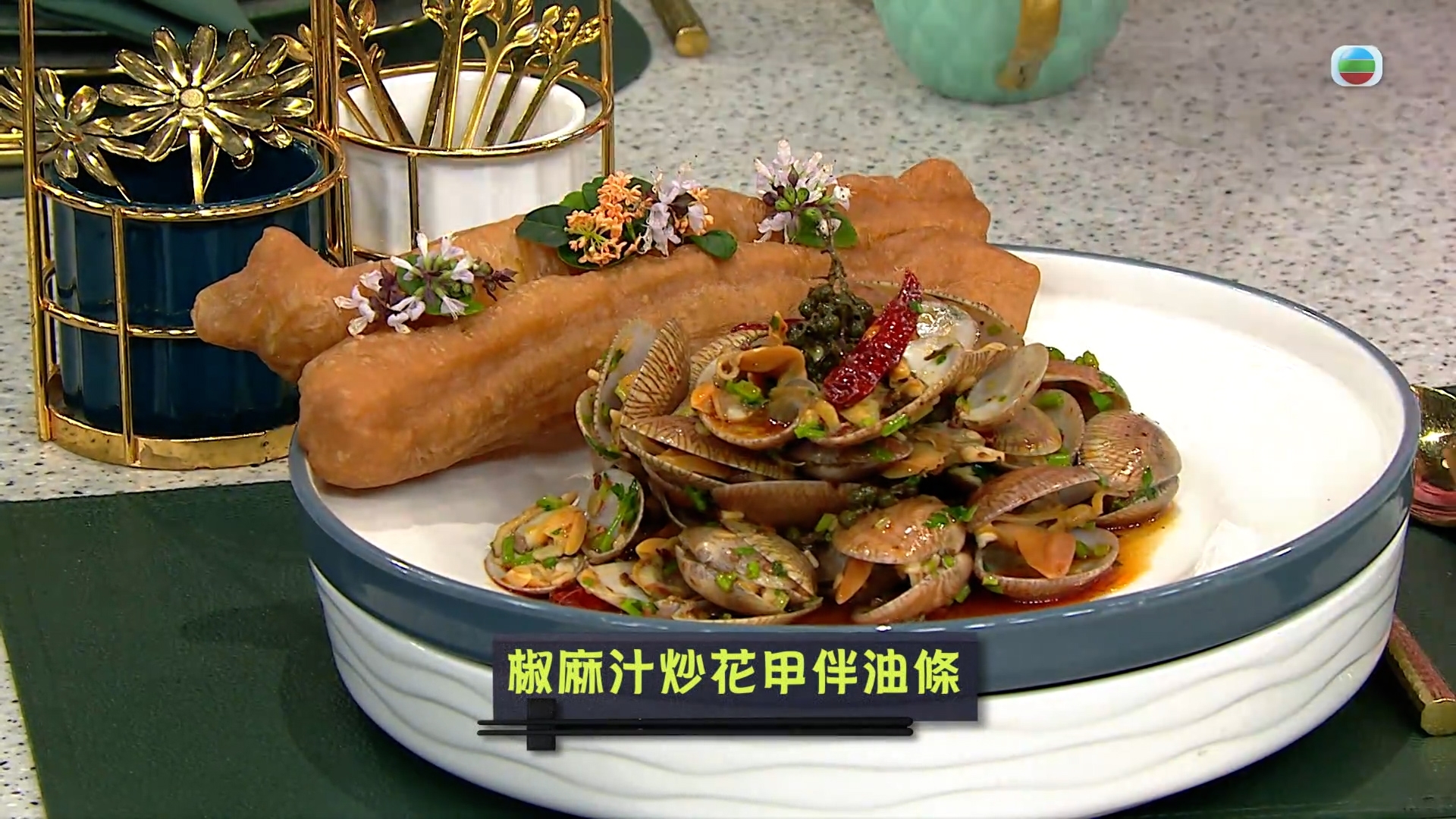 今集《流行都市》「睇餸食飯」環節就有 三姐蕭秀香 教大家煮創意搭配「椒麻汁炒花甲伴油條」。