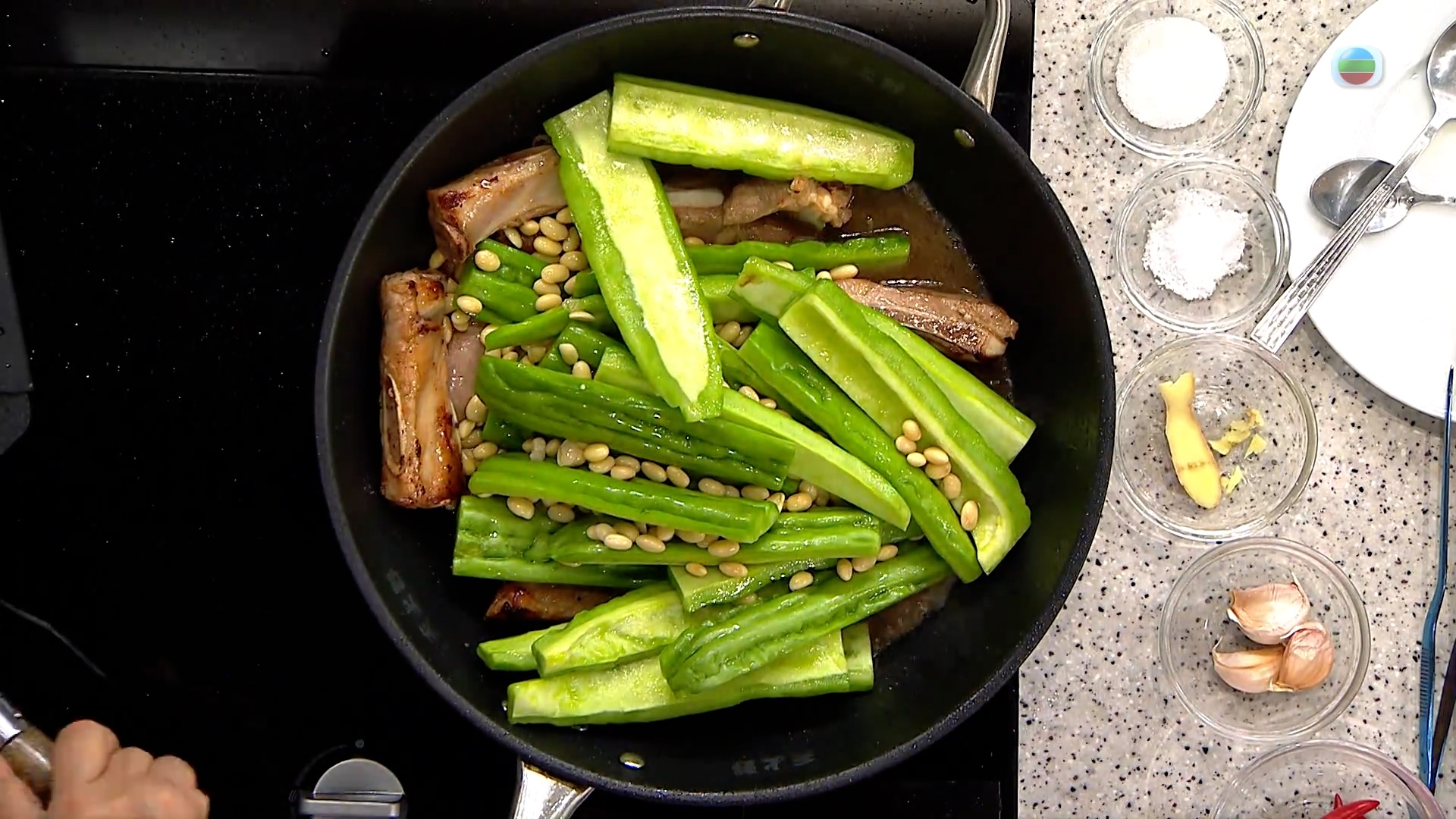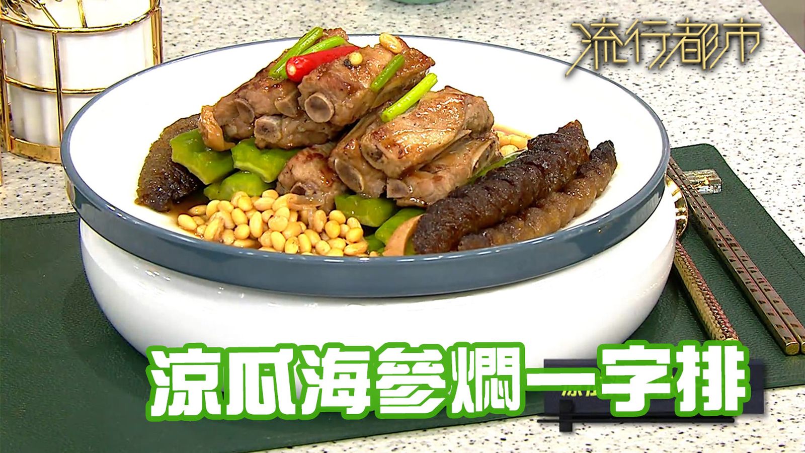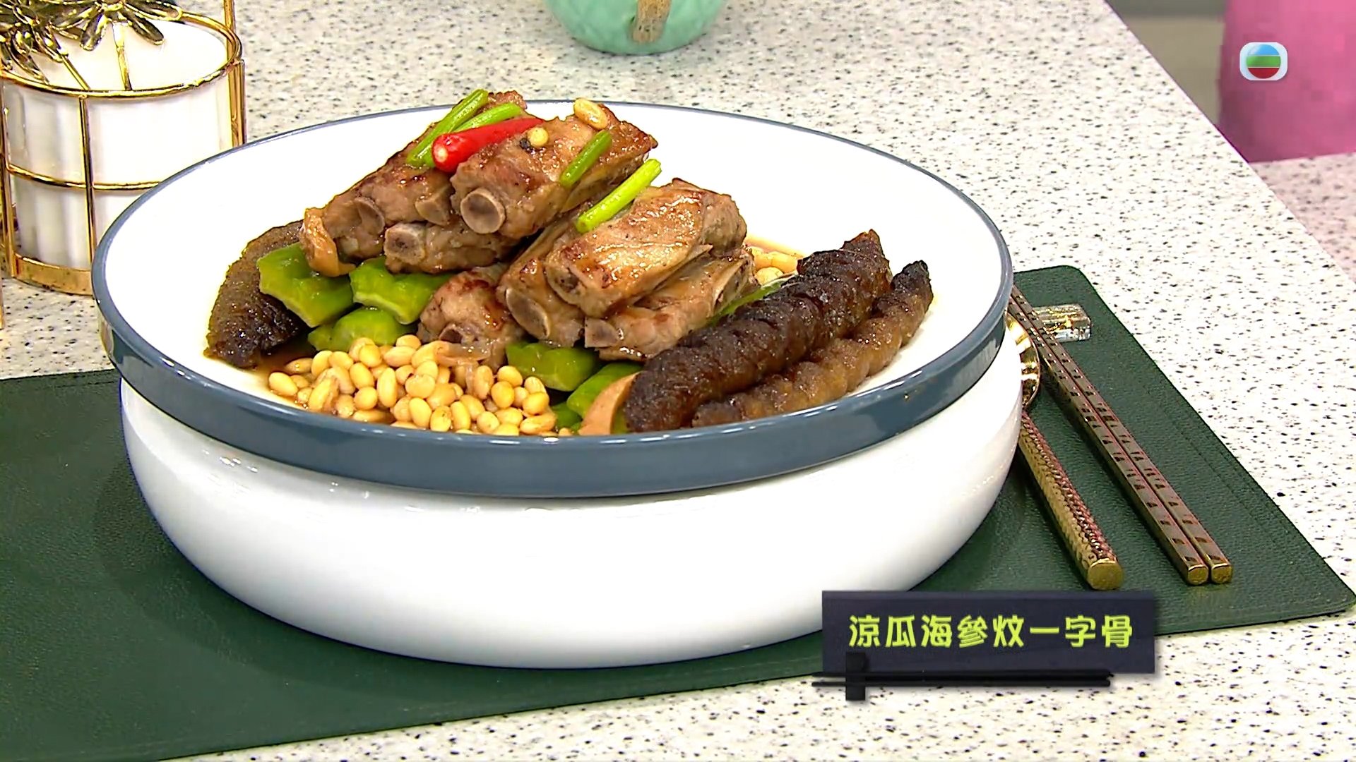 今集《流行都市》「睇餸食飯」環節有 三姐蕭秀香 教大家做「苦瓜海參燜一字排」。