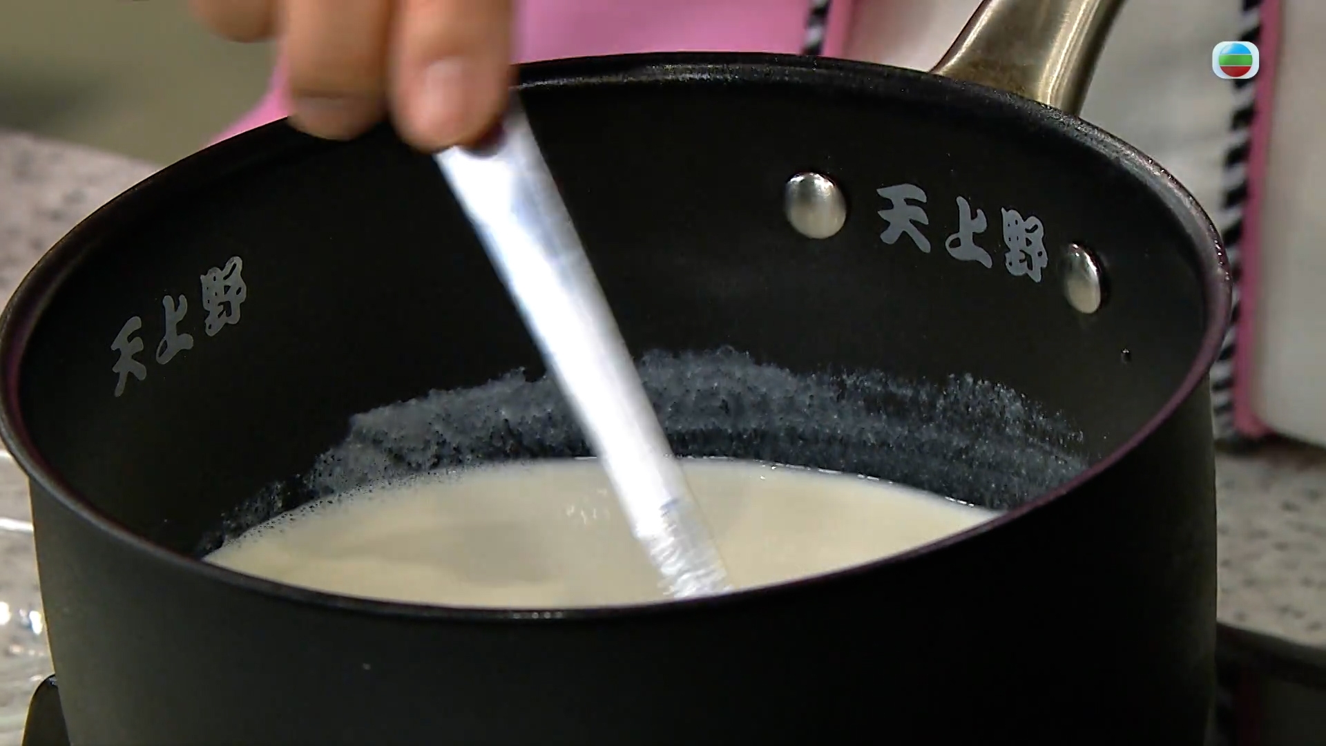 重中之重的杏汁要持續加熱攪拌20分鐘,以免煮焦的同時也是煮出杏仁香味。杏汁不需要加任何配料,只需加一點鹽調味即可。