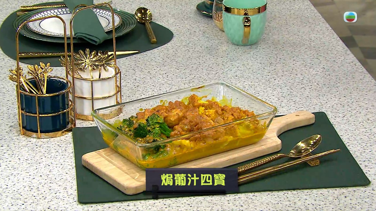 今集《流行都市》「睇餸食飯」環節有 Annie黃婉瑩 教大家做「焗葡汁四寶」 。![]()