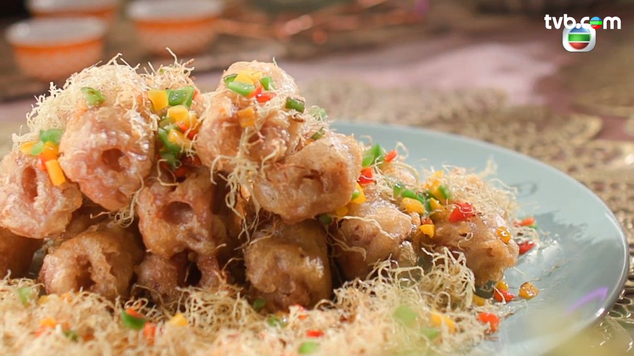 蓮藕食譜|蓮藕不只可以用多煲湯,仲可以煮出多種美食!蕭秀香(三姐)、姜麗文主持的《三餸一湯》中,曾教煮金絲蓮藕,蓮藕炸至金黃色,十分惹味!