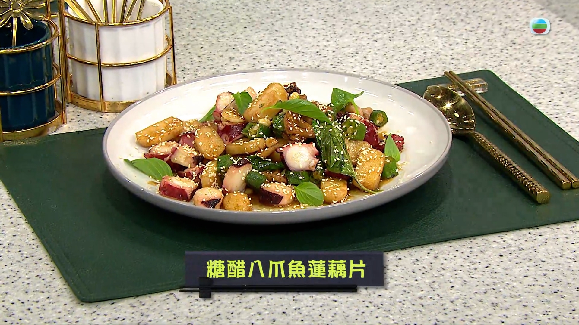 今集《流行都市》「睇餸食飯」環節有 Leslie陳國賓 教大家做「糖醋八爪魚蓮藕片」。