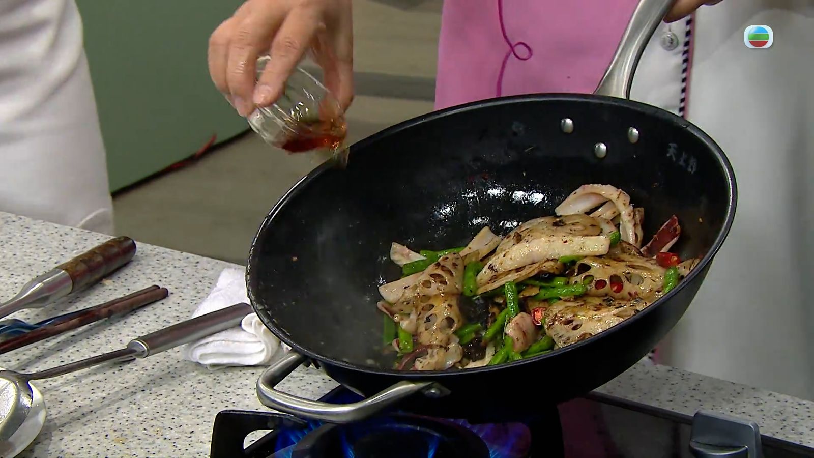 今集《流行都市》「睇餸食飯」環節有 三姐蕭秀香 教大家做「XO醬雙魷炒蓮藕片」 。![]()