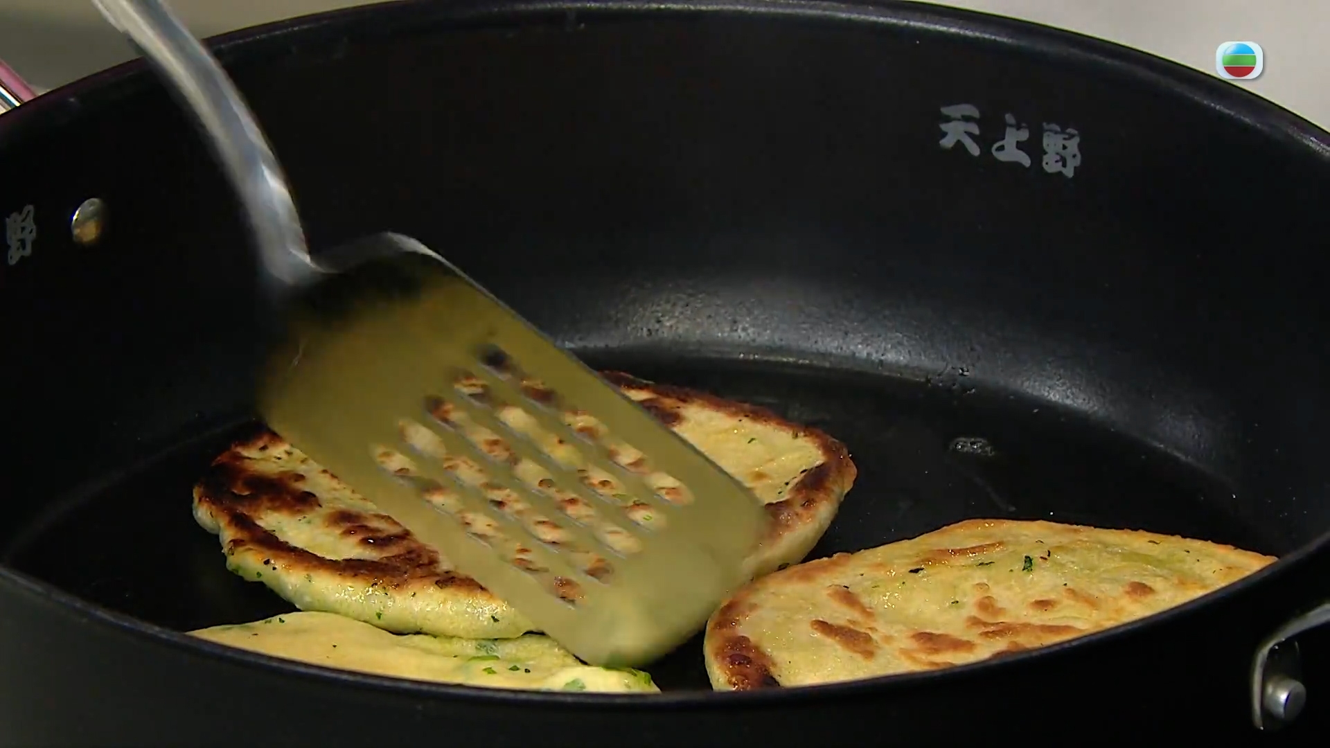 之後用煎鍋把麵餅煎型兩面金黃熟透,就可以上碟了。
