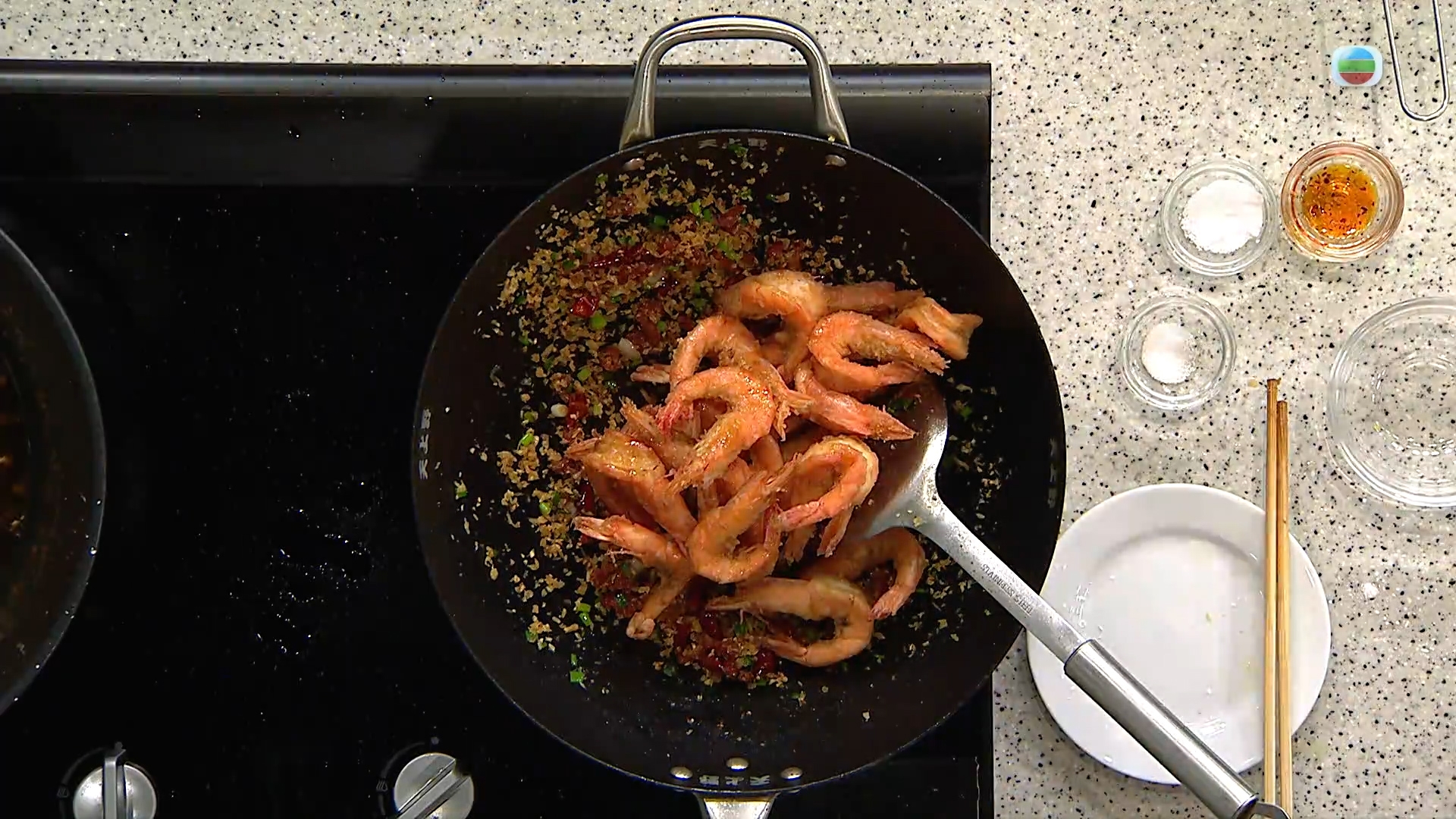 今集《流行都市》「睇餸食飯」環節有 Margaret傅季馨 教大家做「避風塘炒蝦」。