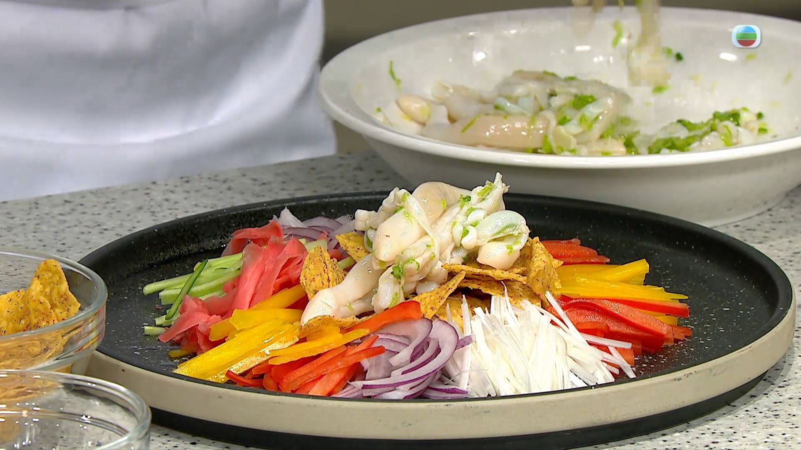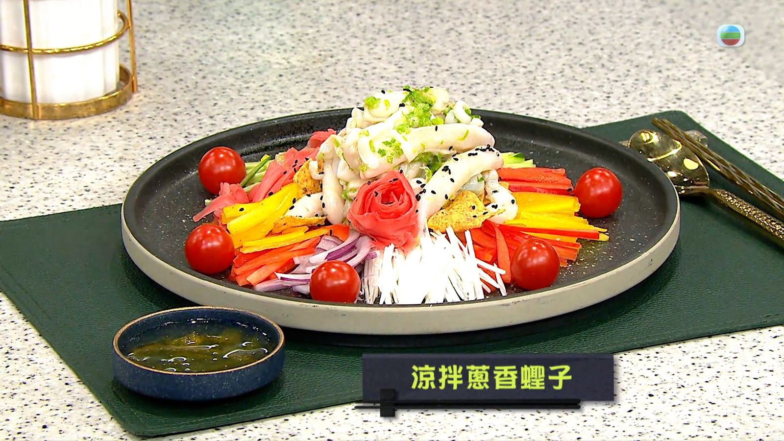 今集《流行都市》「睇餸食飯」環節有 譚詠儀 教大家做「涼拌蔥香蟶子」。