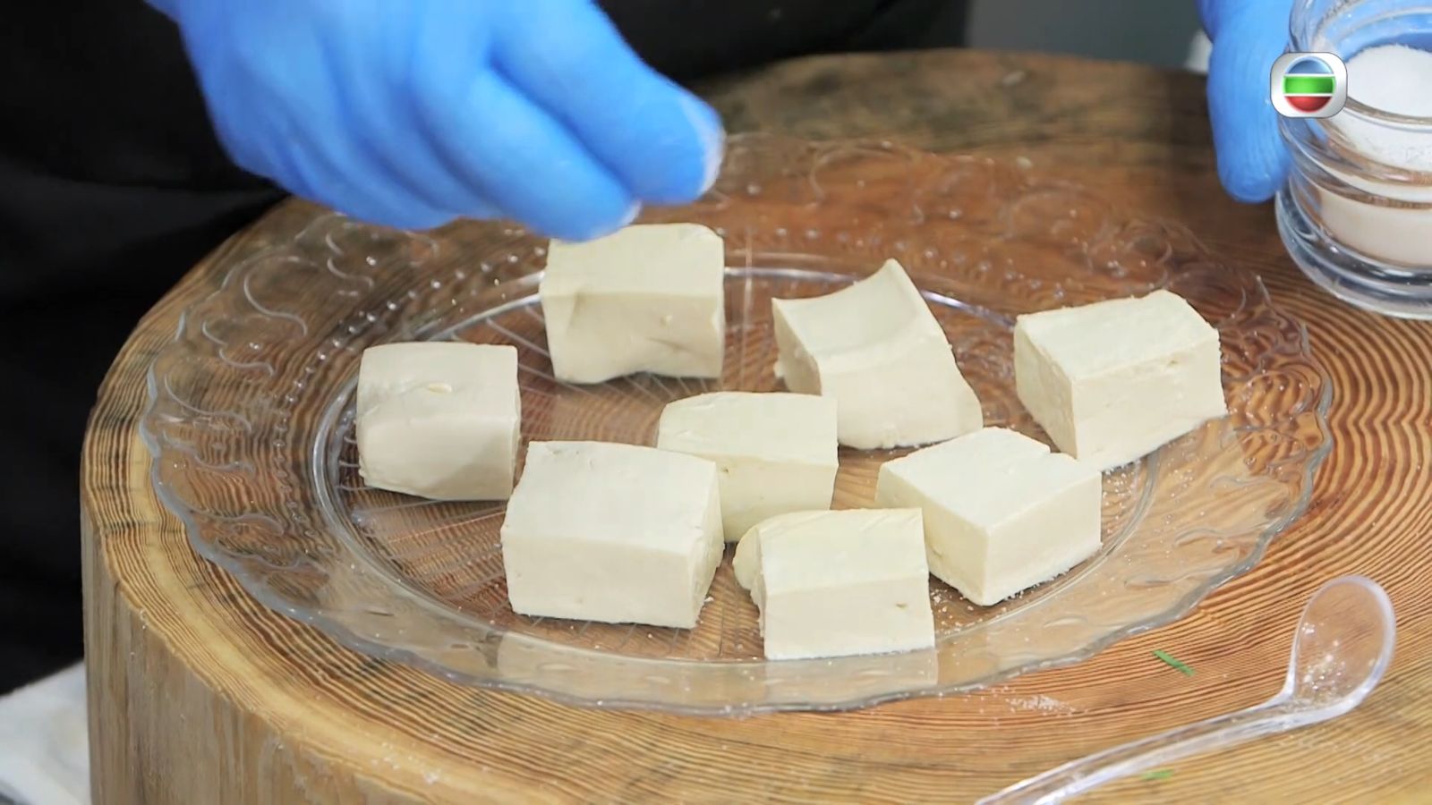 - 在豆腐面頭曬上少許鹽。