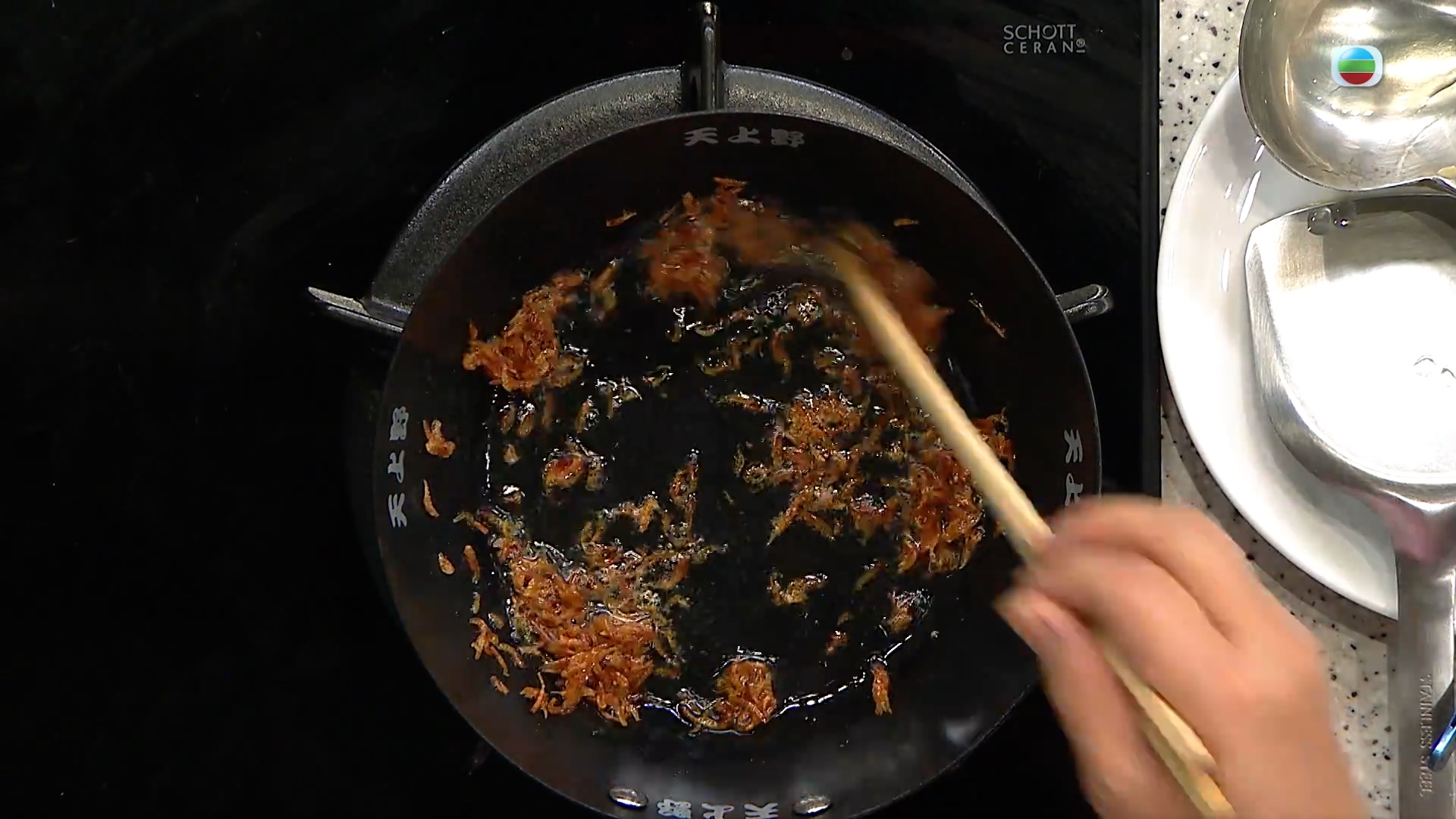 - 櫻花蝦下油鍋爆香,拌入豉油煮成櫻花蝦豉油。