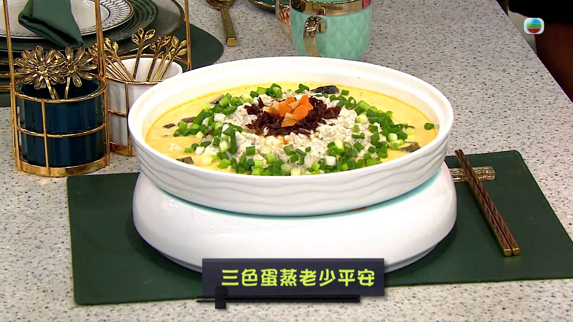今集《流行都市》「睇餸食飯」環節就有 三姐蕭秀香 教大家做「三色蛋蒸老少平安」。