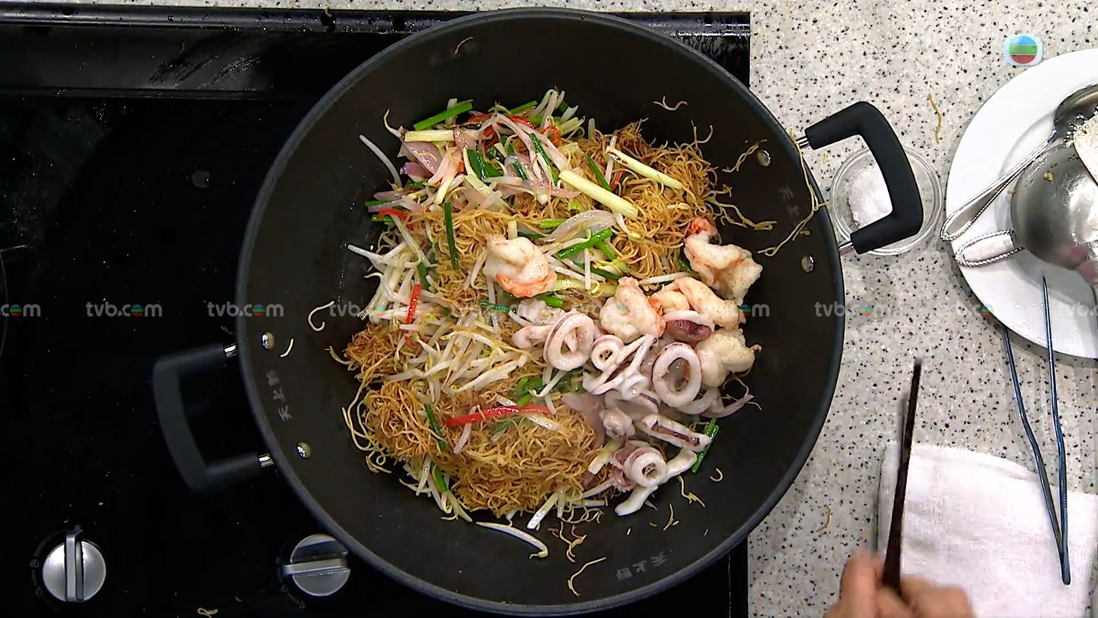 今集《流行都市》「睇餸食飯」環節有 三姐蕭秀香 教大家做「豉油王爽脆海鮮炒麵」。![]()
