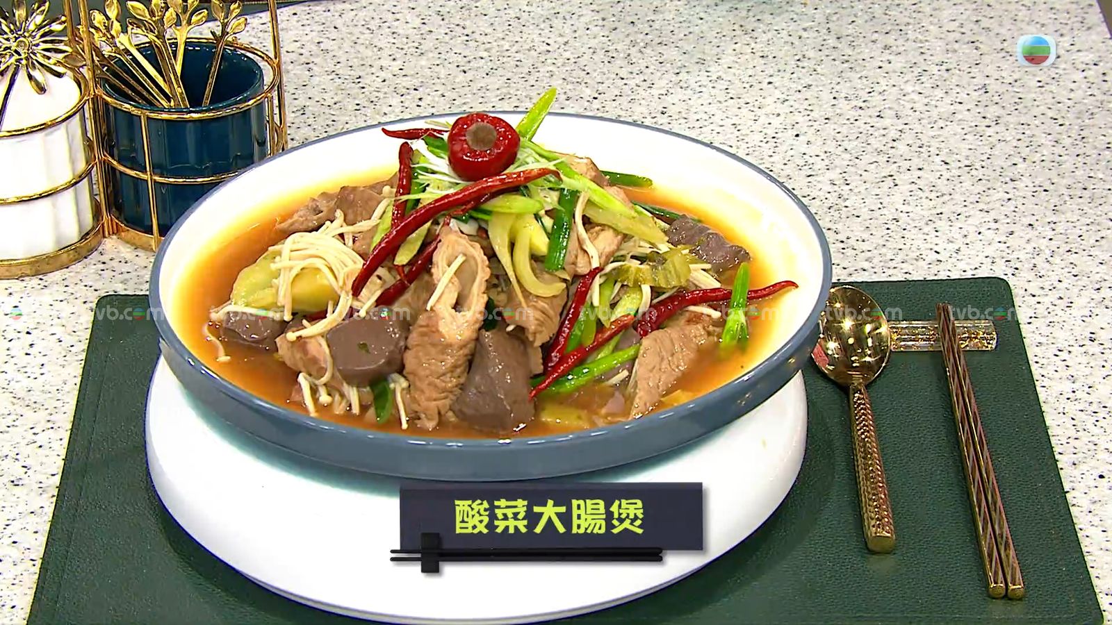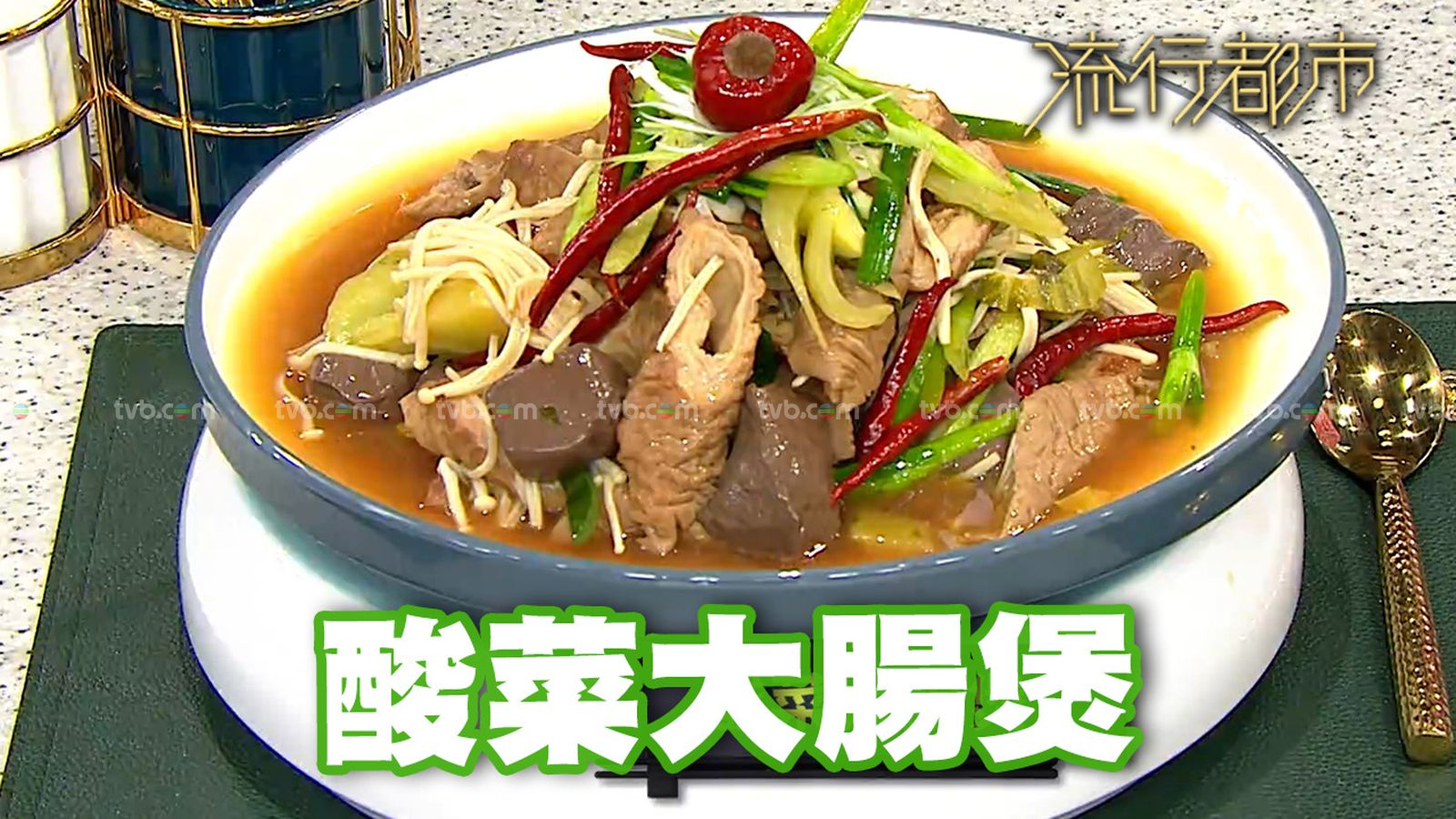 今集《流行都市》「睇餸食飯」環節有 三姐蕭秀香 教大家做「酸菜大腸煲」。![]()