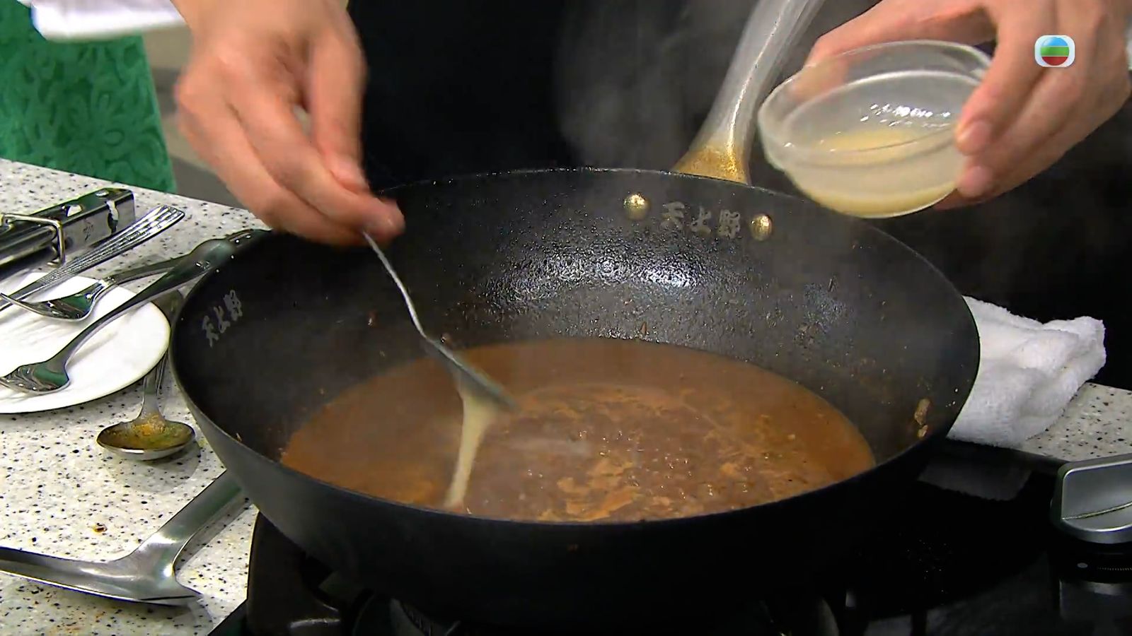 5.麵粉與油拌勻成麵撈,拌入醬汁內煮至濃稠,加入適量豉油、鹽、黑胡椒碎調味。