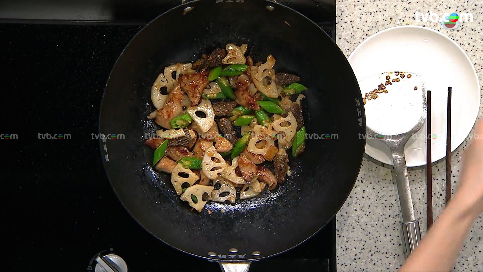 今集《流行都市》「睇餸食飯」環節有 譚詠儀 教大家做「羊肚菌蓮藕炒黑毛豬爽肉」。