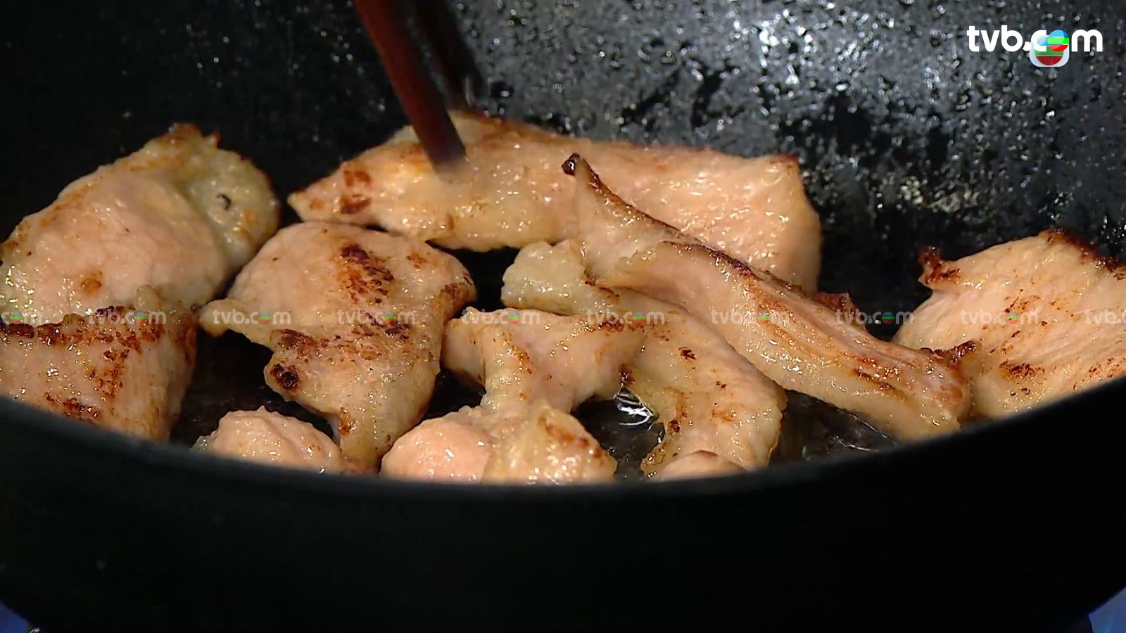 3.熱鑊落油,以中慢火將豬爽肉煎至金黃色及全熟備用。