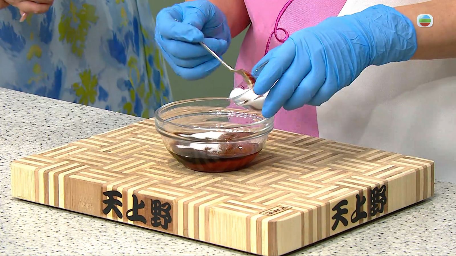 1.大碗內混和茄汁、辣椒醬、醬油、麵豉醬、糖、黃酒,成為混醬。