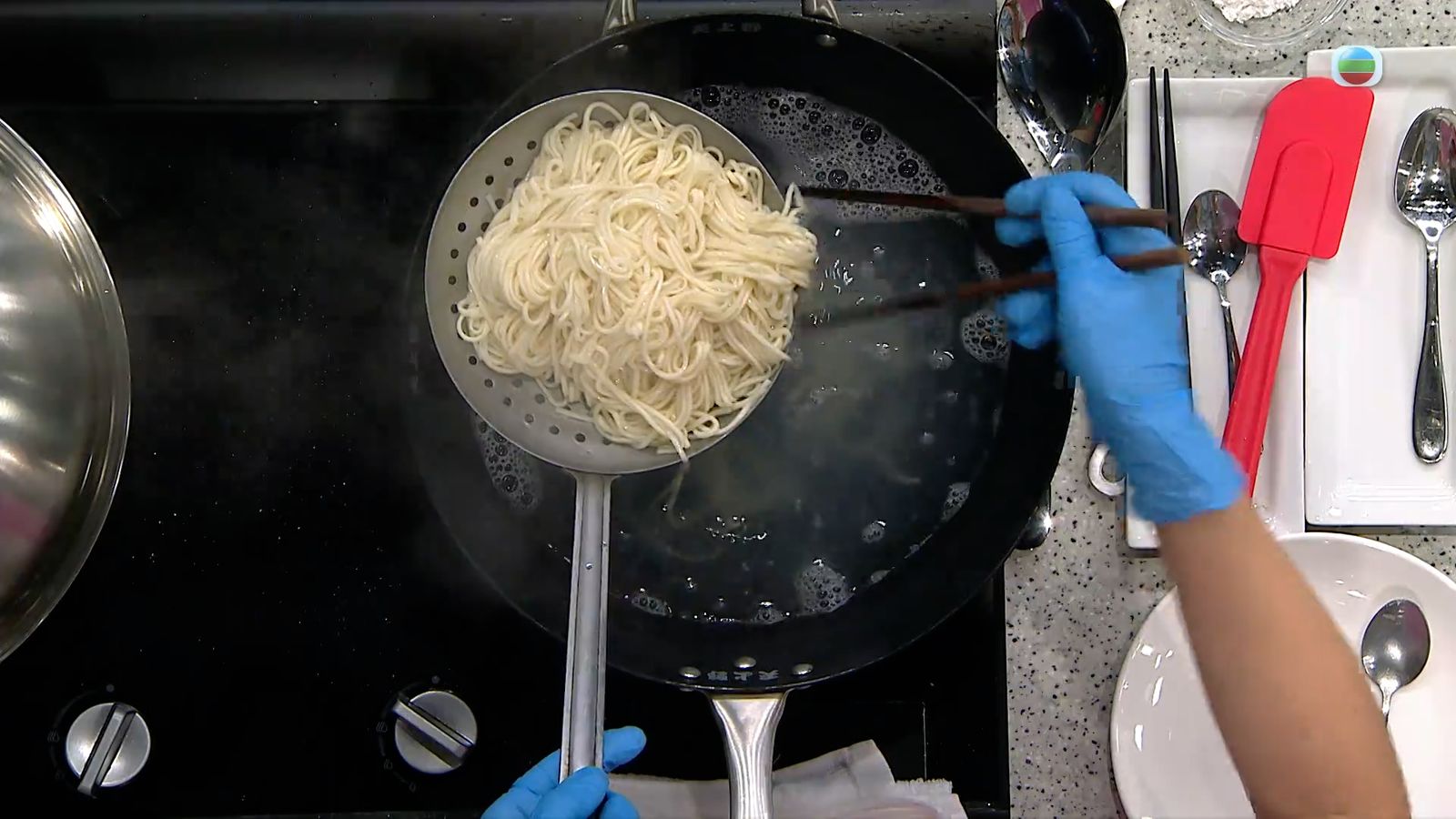 4.麵條焯約4分鐘至熟,隔走大部份水分。