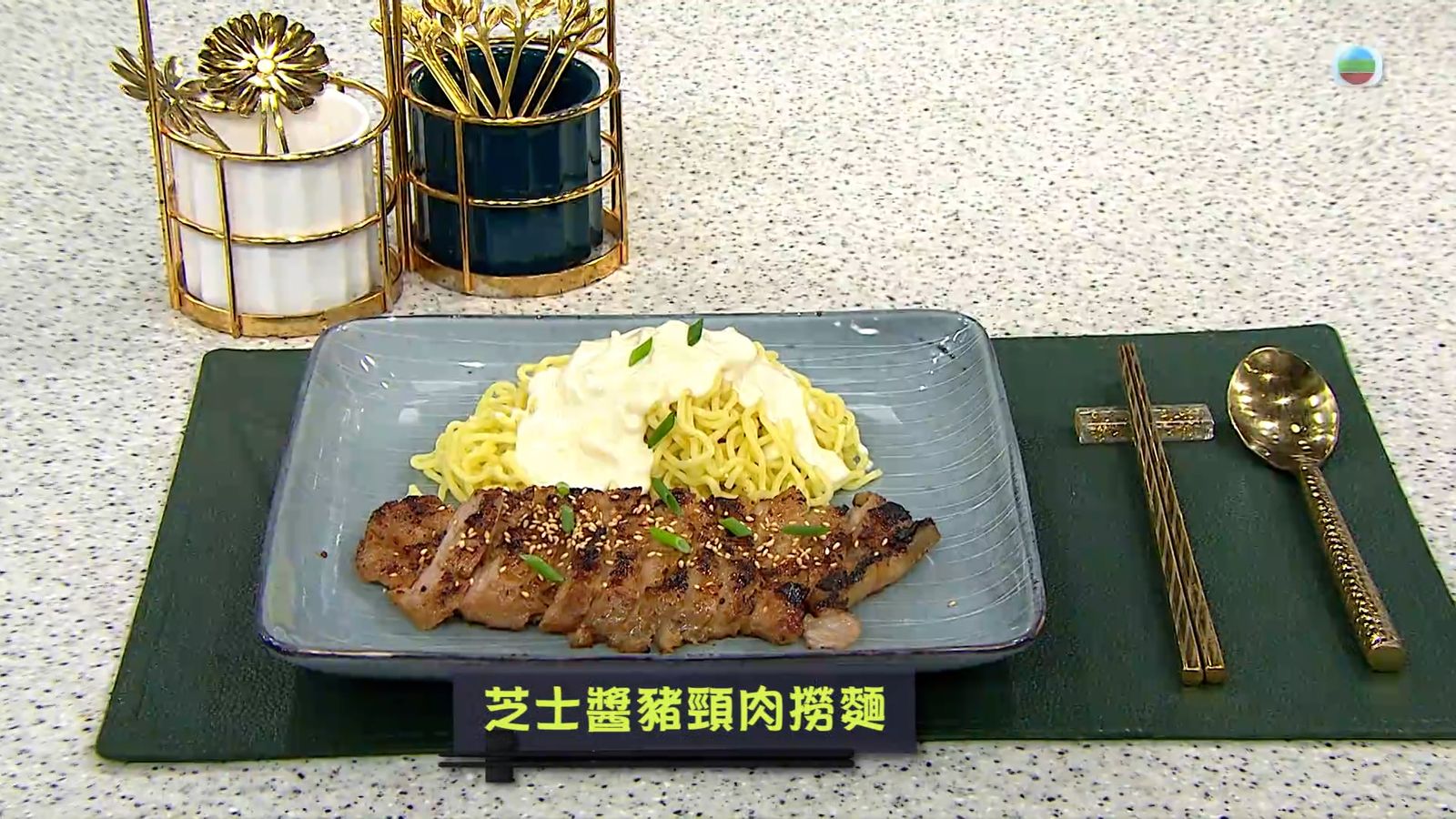 今集《流行都市》「睇餸食飯」環節有 Margaret傅季馨 教大家做「芝士醬豬頸肉撈麵」。![]()