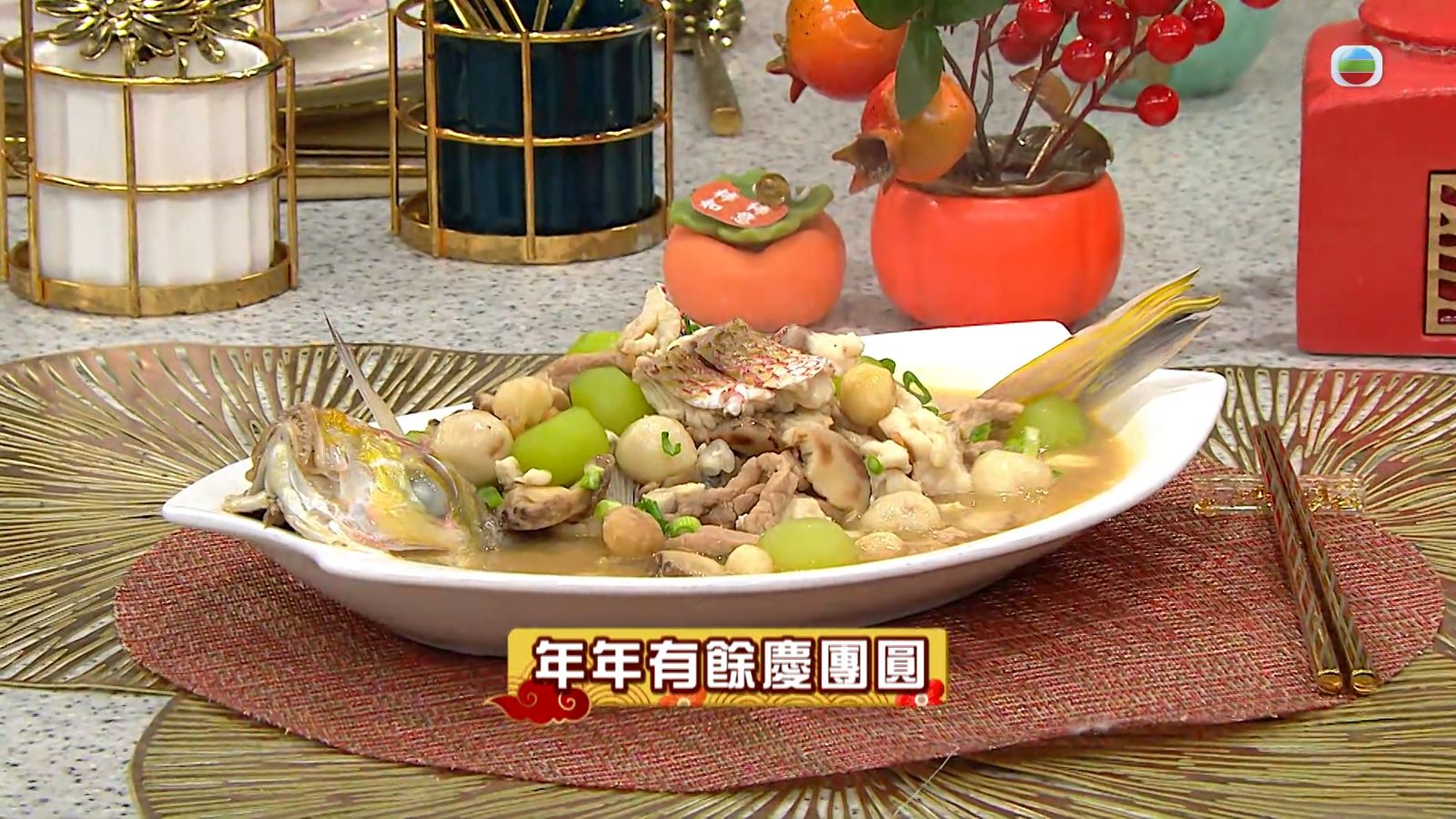 今集《流行都市》「睇餸食飯」環節有 Leslie陳國賓 教大家做「年年有餘慶團圓」 。![]()