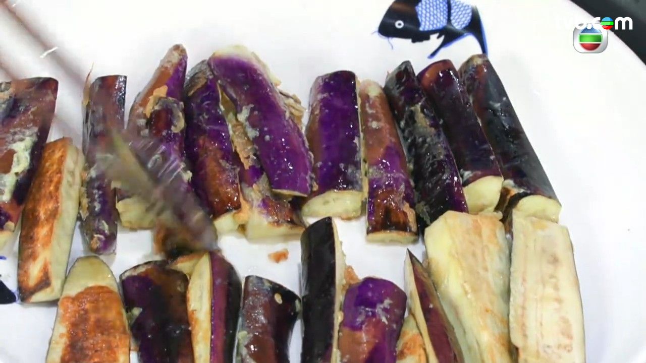 - 蒸籠內放入碟,先放茄子,之後放上魚頭、(1)的醬汁、青紅泡椒及酸薑,蒸15分鐘後淋上熟油