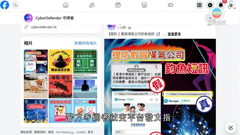 警方指,近日有假冒煤氣公司的釣魚短訊,騙取信用卡資料。