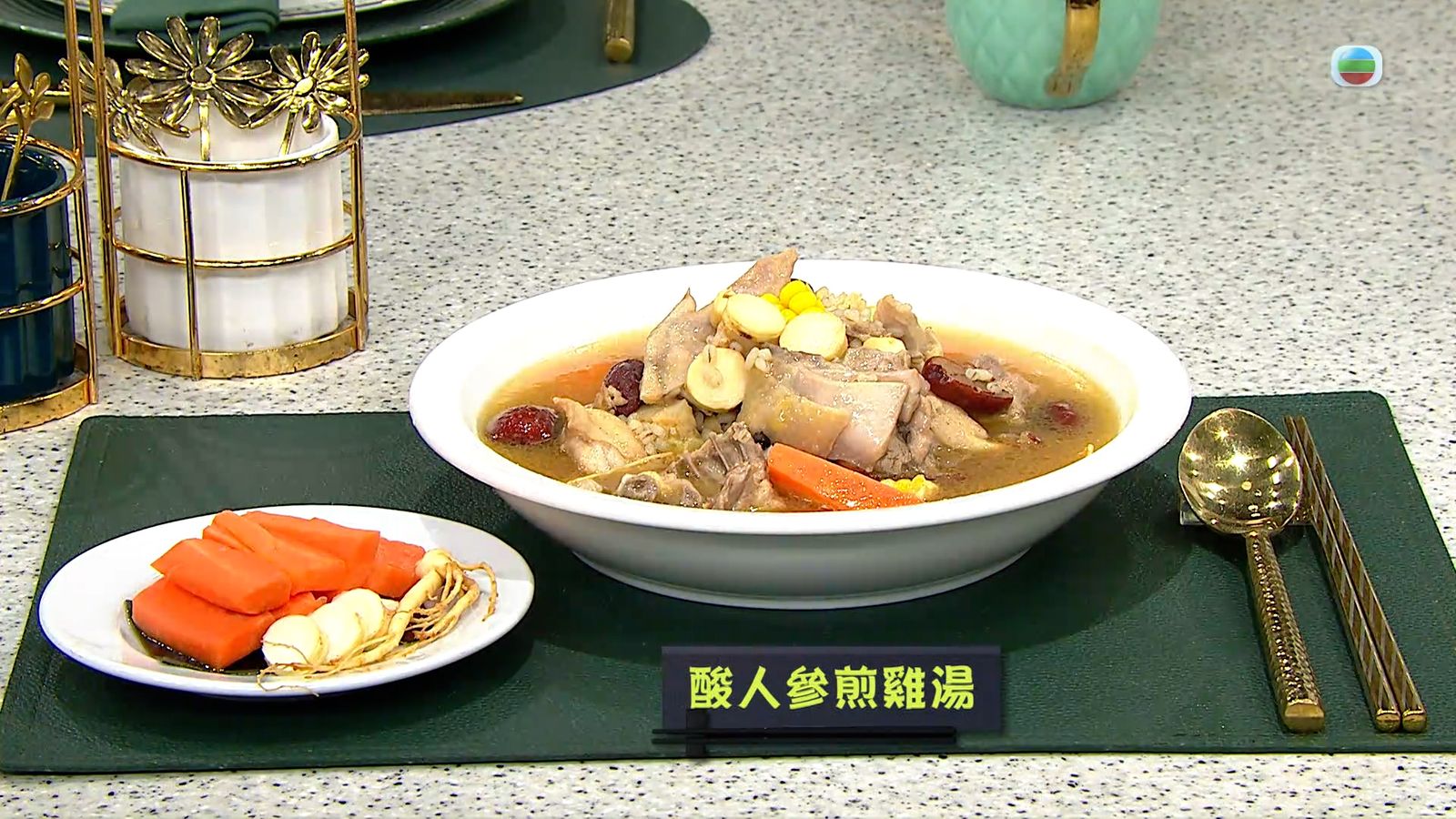 今集《流行都市》「睇餸食飯」環節有 Leslie陳國賓 教大家做「酸人參煎雞湯」。![]()