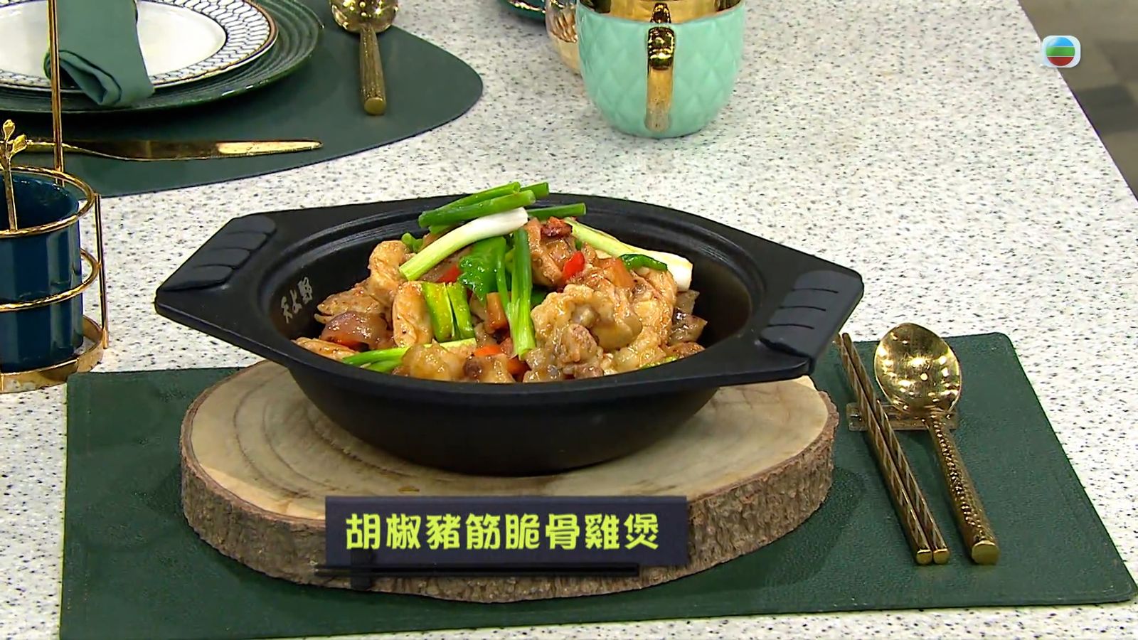 今集《流行都市》「睇餸食飯」環節有 Leslie陳國賓 教大家做「胡椒豬筋脆骨雞煲」 。