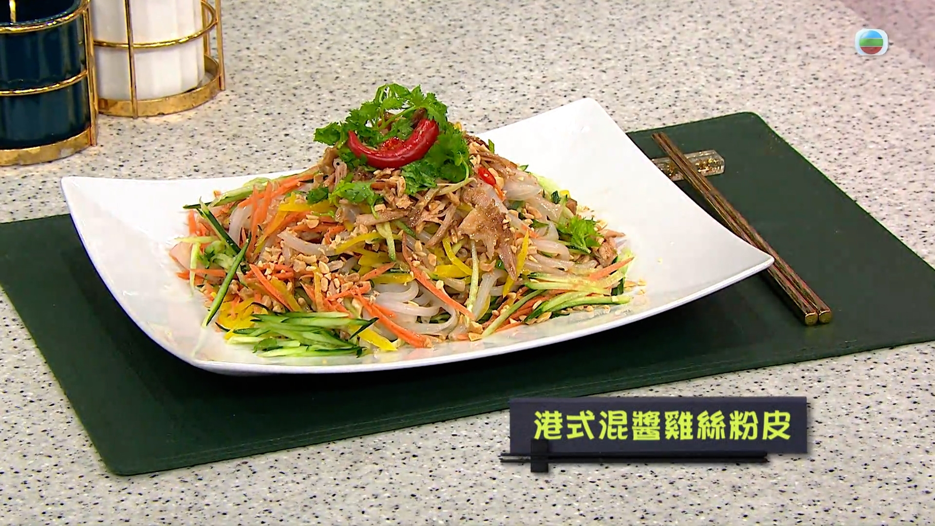 今集《流行都市》「睇餸食飯」環節就有 Annie黃婉瑩 教大家做「港式混醬雞絲粉皮」。