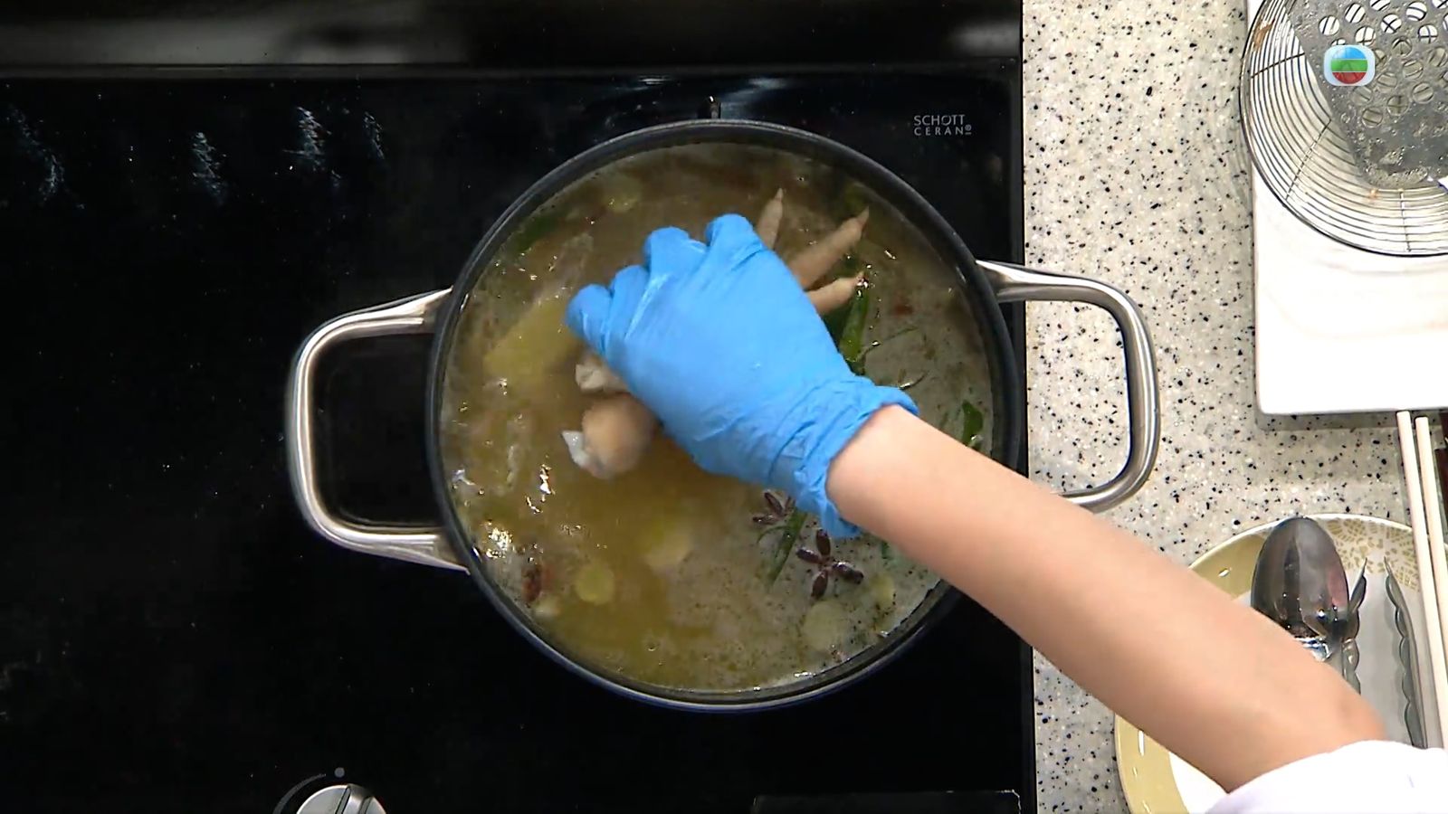 4.轉細火,放入雞腳開蓋煮約20分鐘,再關火浸25分鐘後,就可夾起雞腳放涼,並剪去雞腳甲備用。