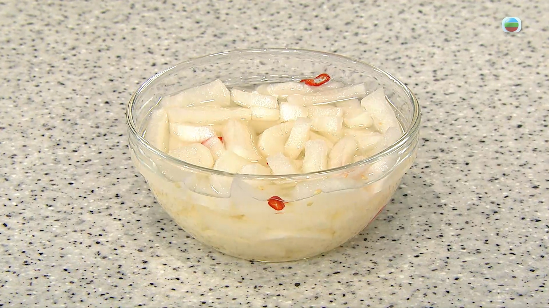 1.蘿蔔切條,加鹽,待出水後濾走及榨乾水分,放入已混和糖的白醋浸一晚,備用。