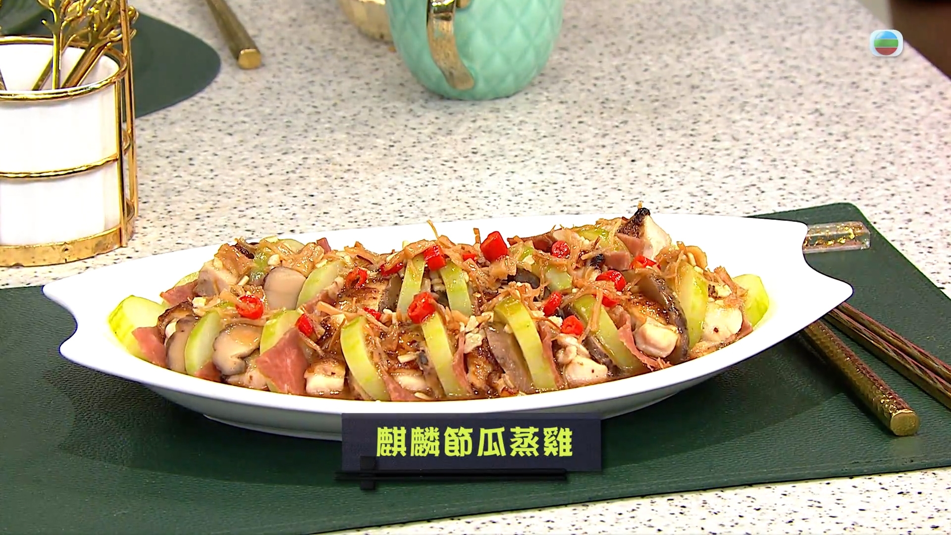 今集《流行都市》「睇餸食飯」環節就有 三姐蕭秀香 教大家做「麒麟節瓜蒸雞」。