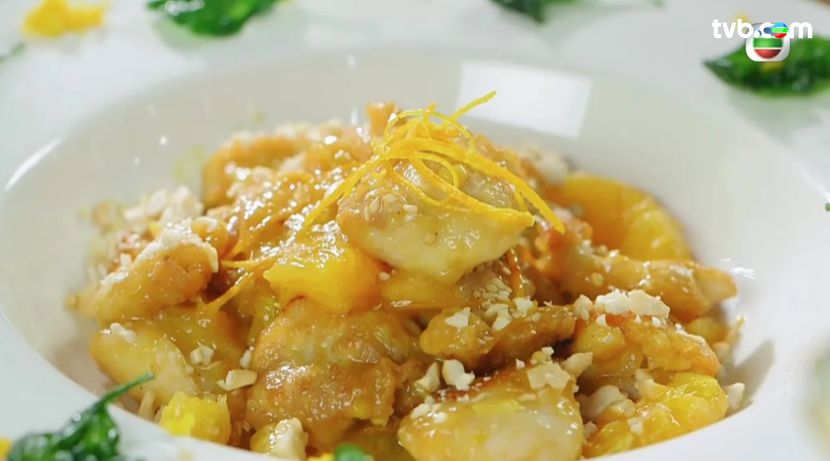 蕭秀香(三姐)、江美儀(美儀)主持的《女人必學100道菜》中,曾教使用橙汁和雞柳2種主要食材就煮出酸酸甜甜的餸菜,為了醬汁可以很香,今次仲用了橙汁混合芒果汁及白醋!