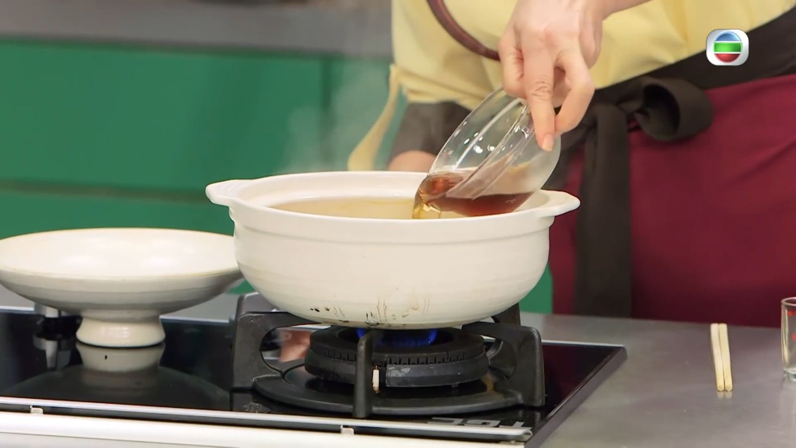 - 把三杯鹿茸大補酒注入煲中的湯底內。