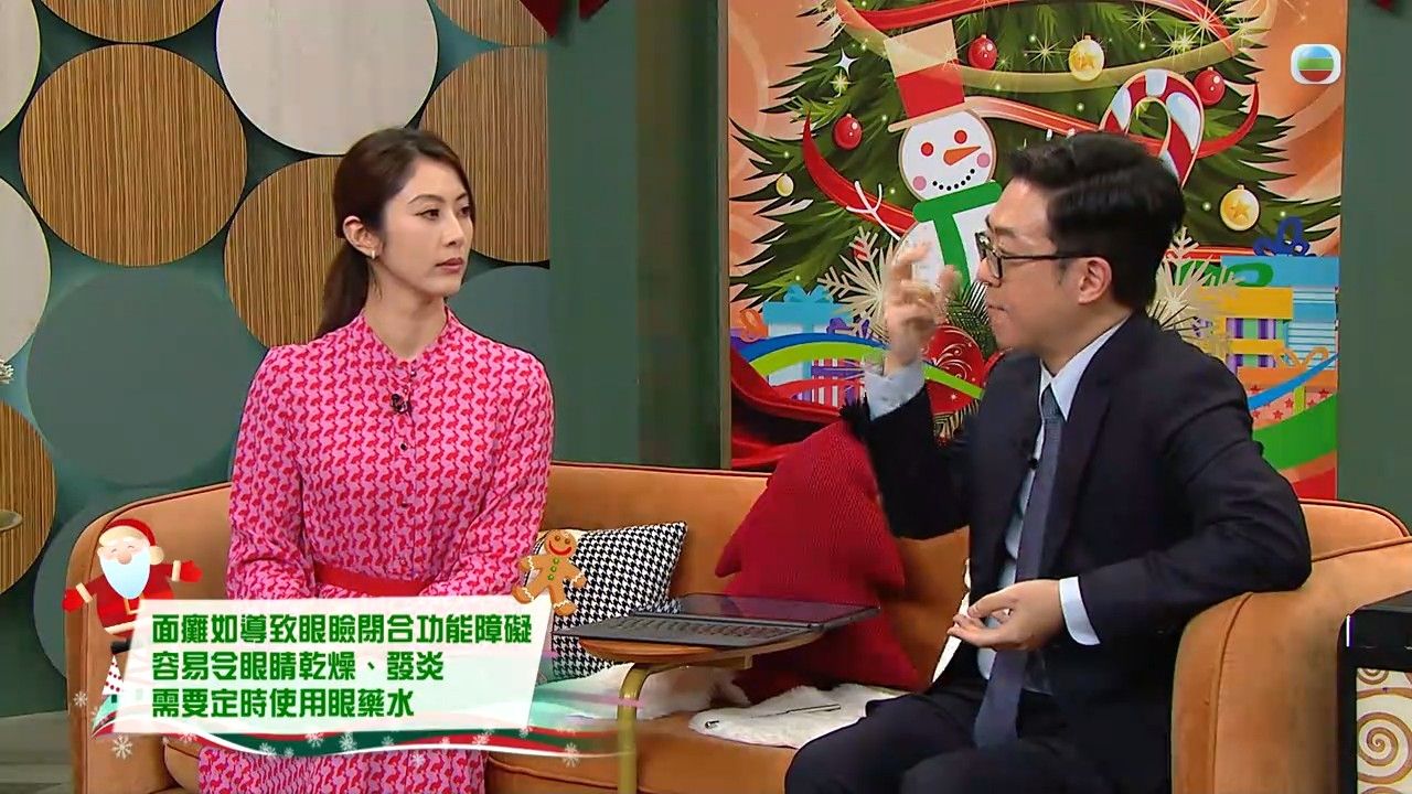 面癱如導致眼臉閉合功能障礙,容易令眼睛乾燥、發炎,就需要定時使用眼藥水;眼睛如果嚴重發炎,就要和眼科醫生商討手術事宜。麥偉傑醫生指,面癱還可以結合針灸、物理治療等,令肌肉不會萎縮。