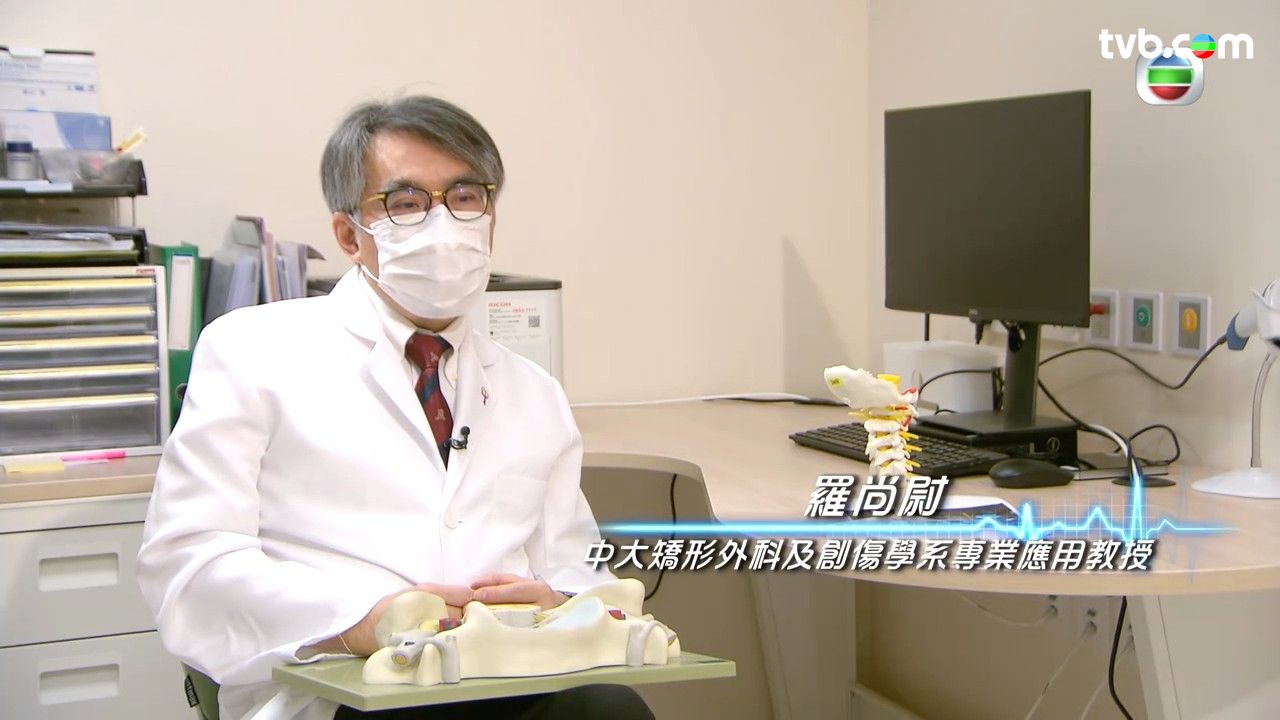《最強生命線》找來了頸椎病患者葉女士分享患病經歷,從事電腦工作的她每天上班八、九小時,回家後又繼續坐著用電腦。長時間頭部前傾令她持續出現肩頸膊痛,起初自行貼膏布及按摩皆無效。後來經磁力共振檢查,發現頸椎骨節退化並壓著神經線。幸好,她無須依賴止痛藥,單靠定期進行物理治療和做運動,便成功改善痛症。