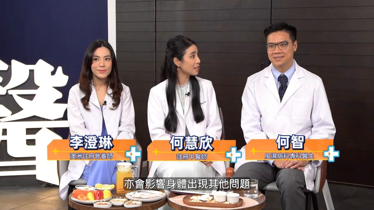 類風濕關節炎,是一種自身免疫性疾病 ,會導致關節紅腫脹痛。類風濕關節炎可以在任何年齡出現,免疫系統錯誤轉為攻擊自己的組織滑膜,便會造成類風濕關節炎。 TVB節目《醫度講》請到受類風濕性關節炎問題困擾的藝人邱芷微到來分享,並有風濕病科專科醫生何智醫生、註冊中醫師何慧欣、李澄琳營養師一同為大家講解類風濕關節炎的全方位資訊。