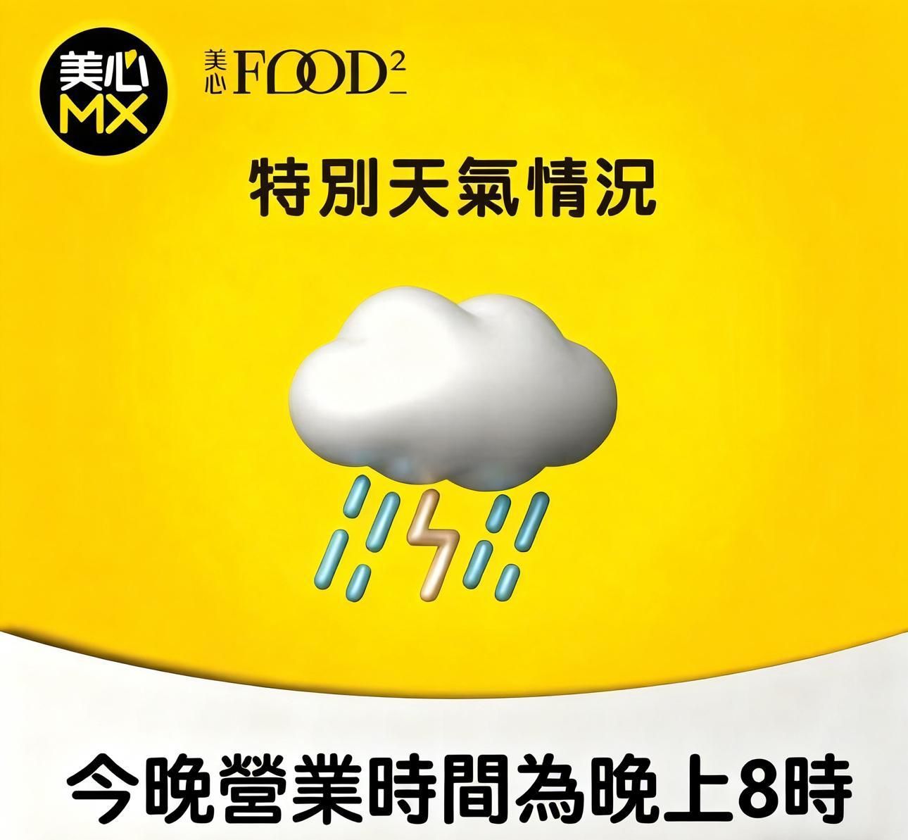 美心MX Facebook指,今日(23/9)全線美心MX /美心Food²營業至晚上8時。