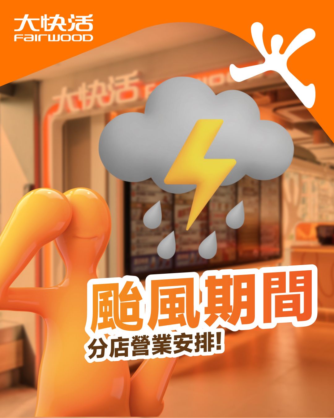 在八號風球懸掛下,大快活部份分店將會安全情況下繼續營業,大家可以在官方平台上查詢分店營業時間。