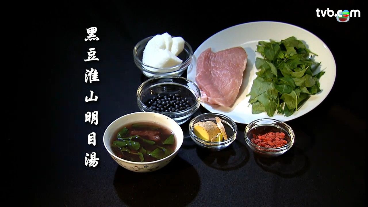 節目最後推介了黑豆淮山明目湯水,可以補益肝腎及明目。不過,熱氣、濕熱、外感人士不適宜飲用