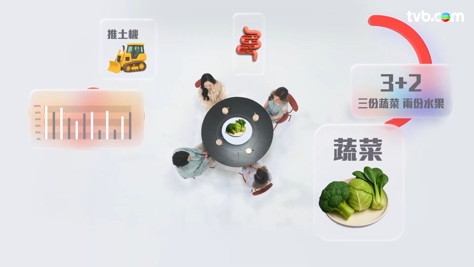 今集TVB節目《食好D》主持人陸浩明聯同三位港姐冠軍——食品工業管理碩士馮盈盈、醫療科學碩士宋宛穎、營養學學士莊子璇,以及澳洲註冊營養師潘卓琳共同探討有關蔬菜的健康知識。![]()