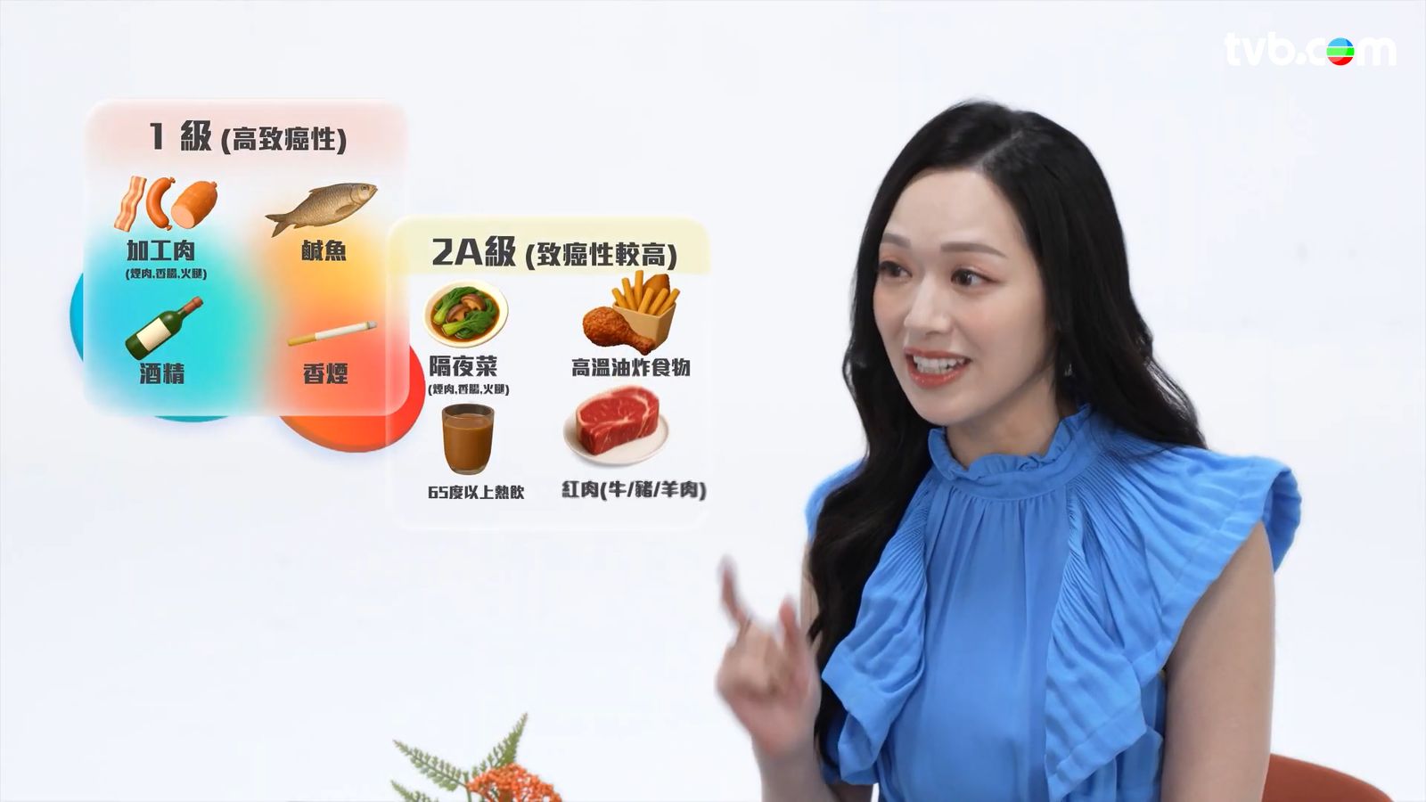 根據WHO(世界衛生組識)資料,牛肉已經被界定為2A級致癌物。馮盈盈向大家介紹,這是由於牛肉中含有N-亞硝基化合物、血紅素鐵、雜環胺、異環胺等,經過150攝氏度的高溫烹飪之後,會容易產生致癌物質「異環胺」,增加大腸癌 的風險!![]()